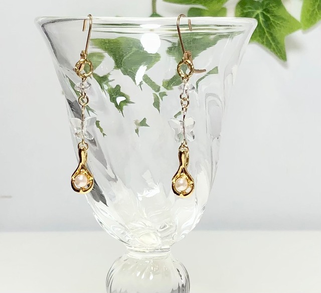 バタフライ水晶&透かしイヤリング