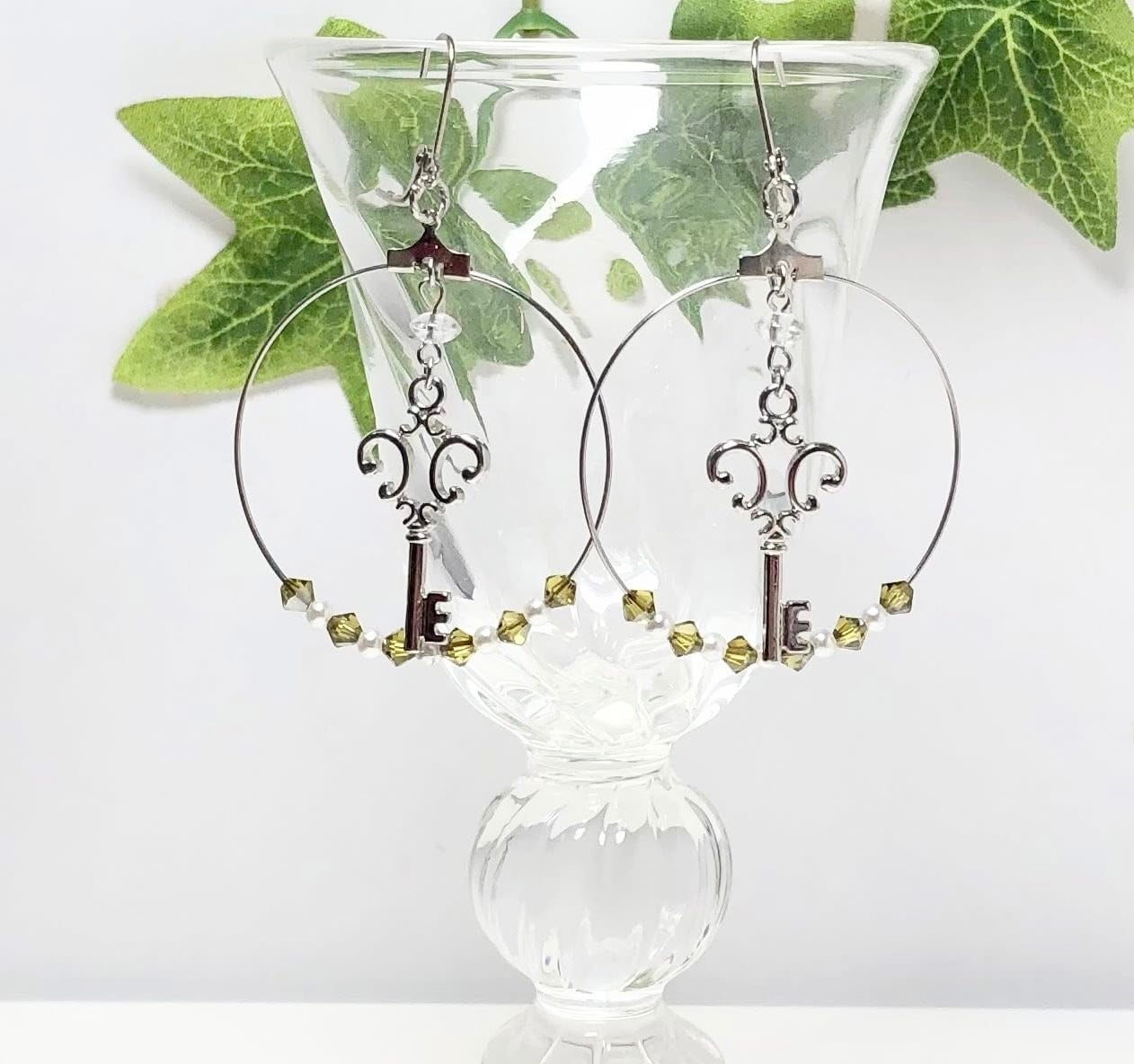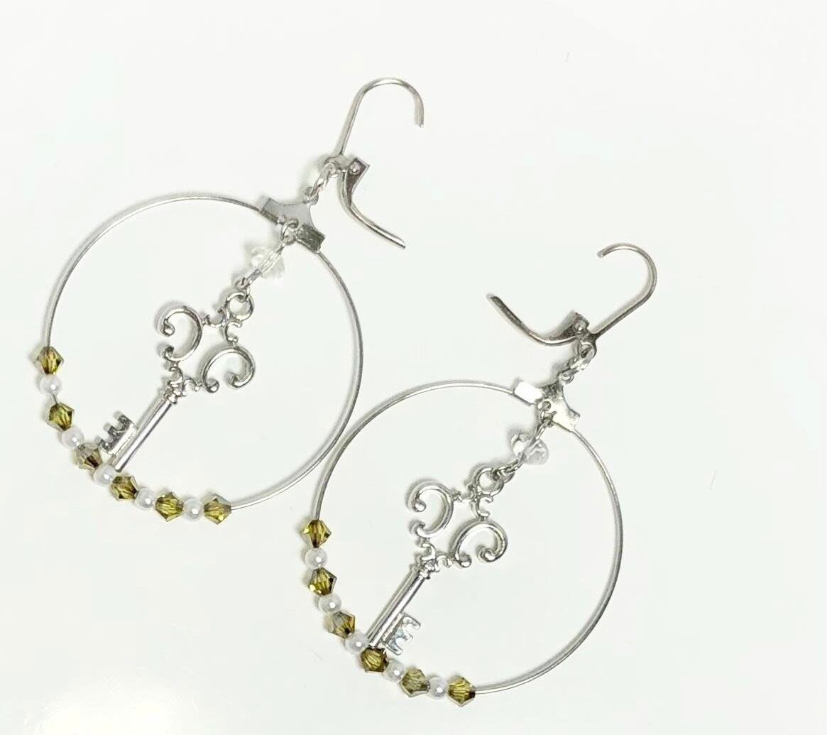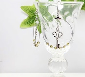 天然石そろばん水晶とスワロフスキーのキー(鍵)ピアス