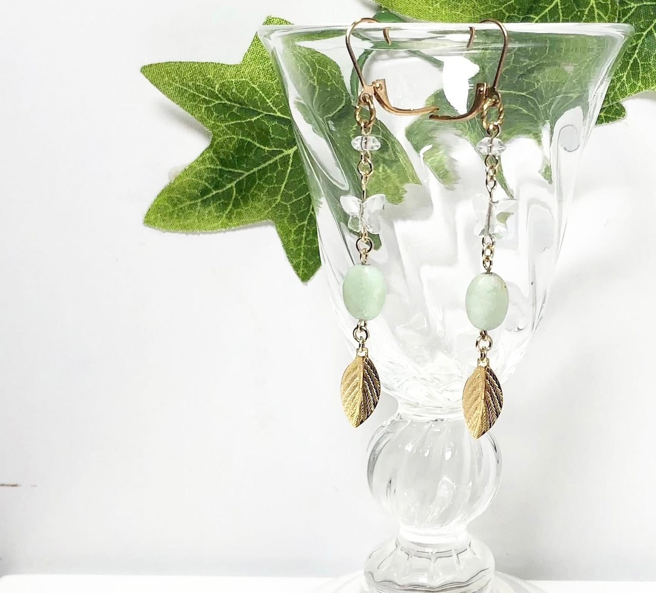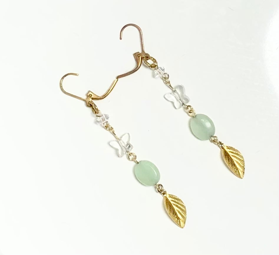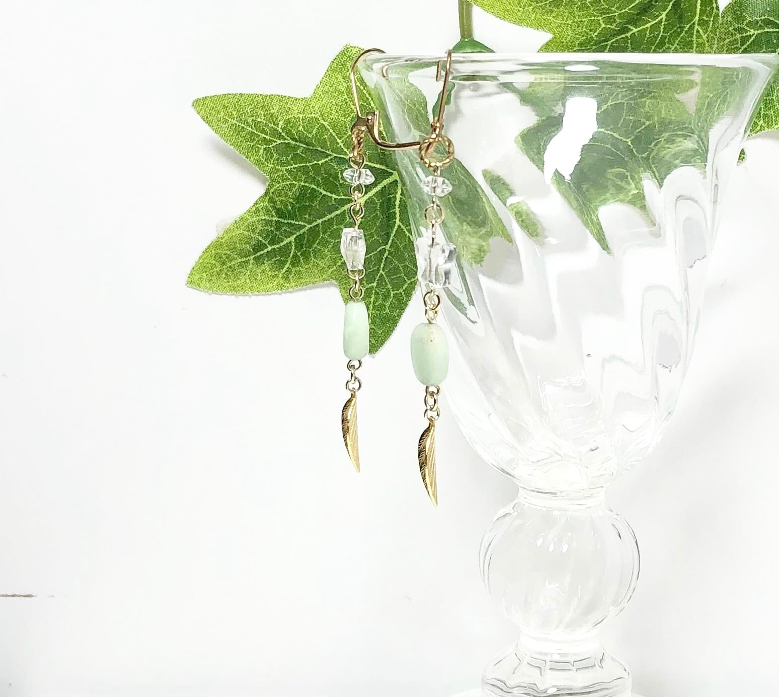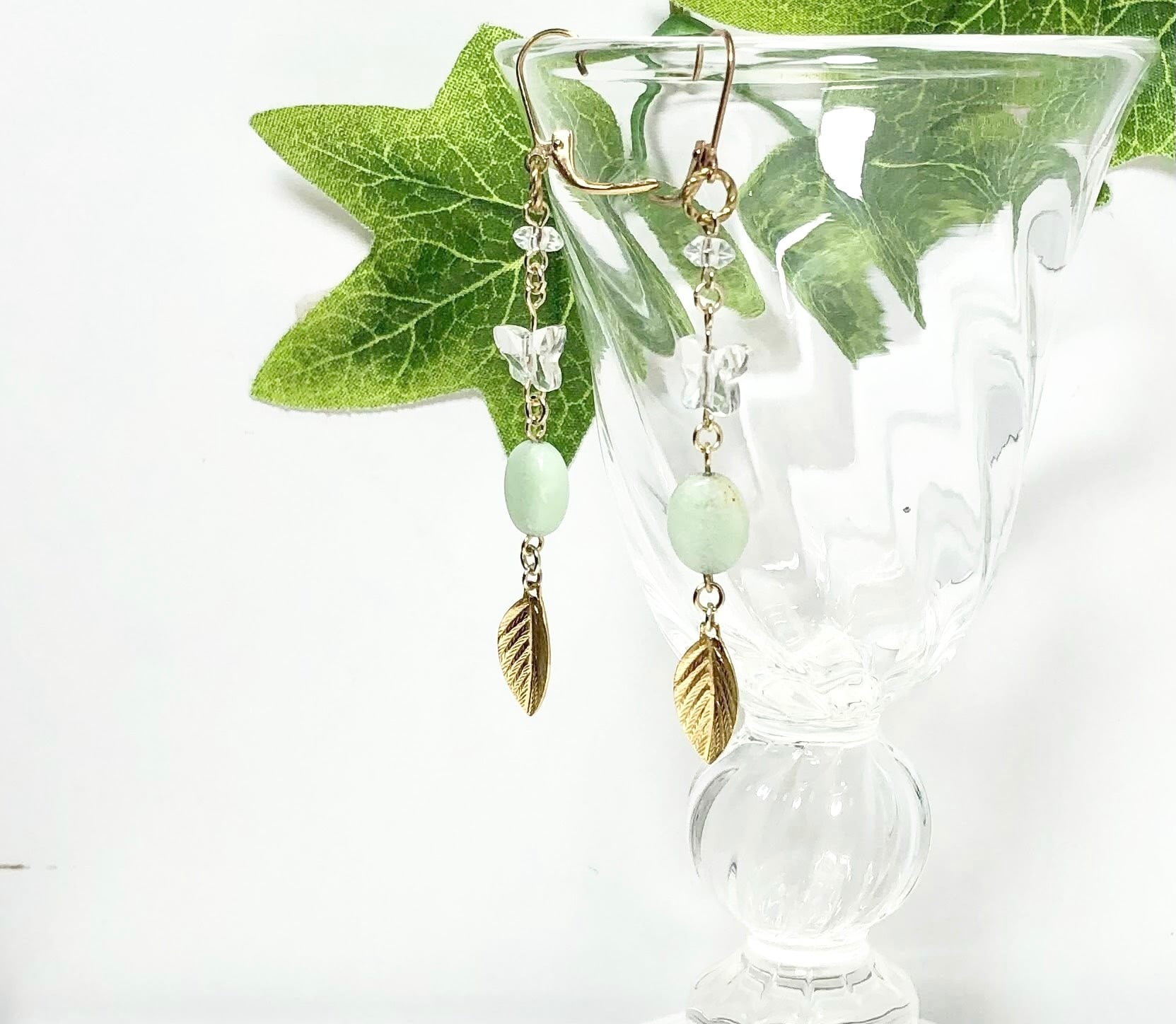 天然石アマゾナイトと バタフライ水晶とそろばん水晶のピアス
