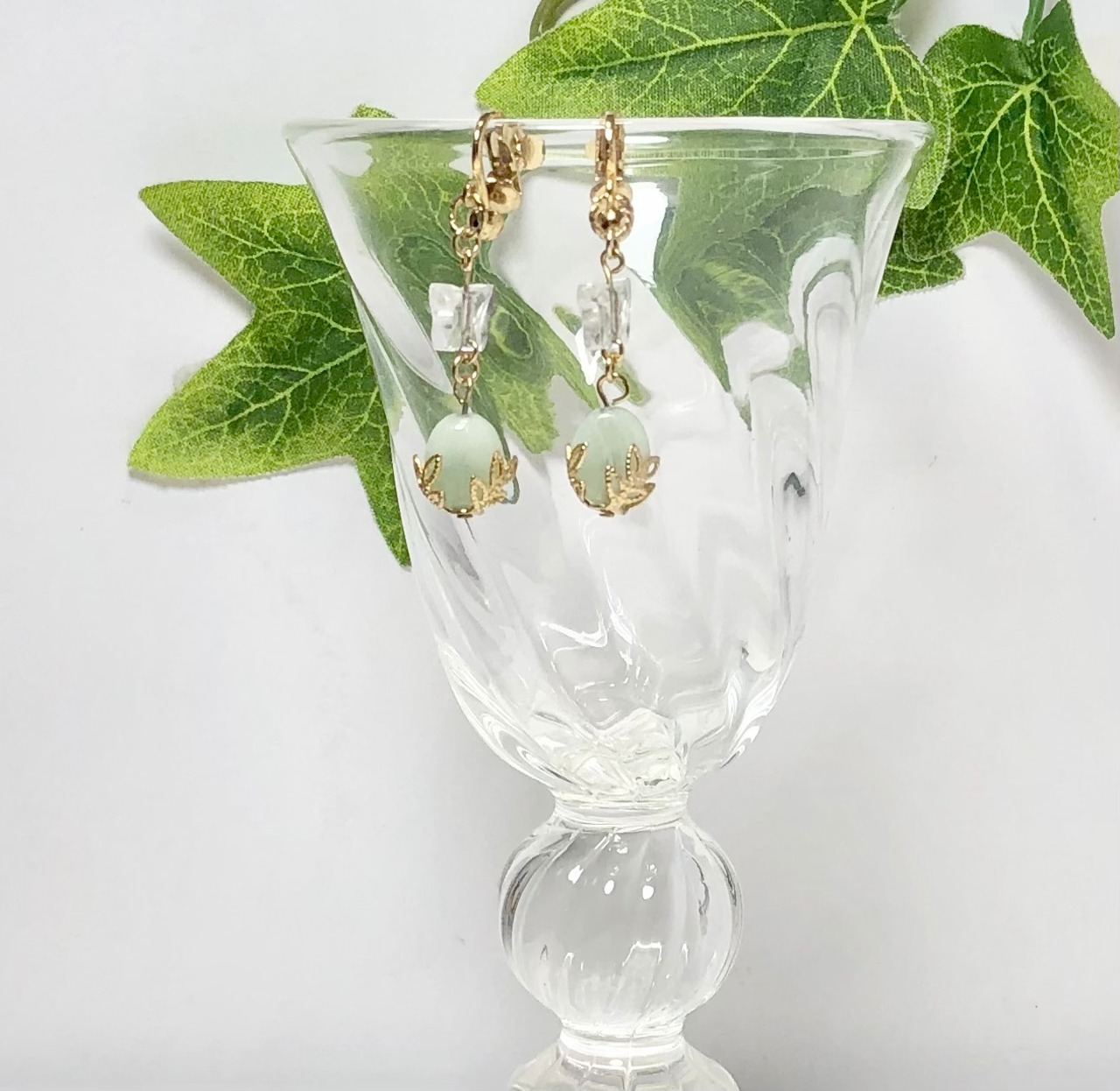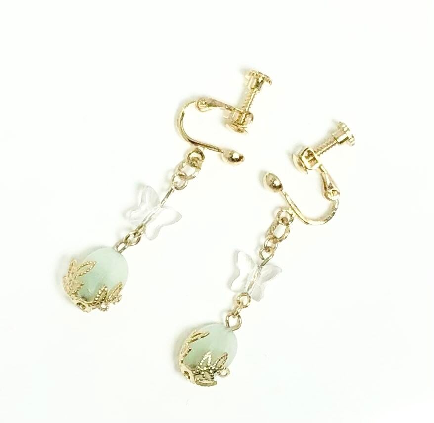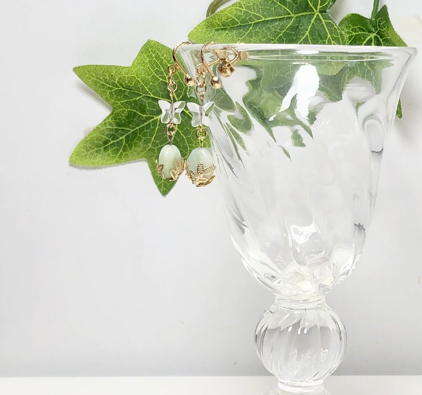 天然石アマゾナイトとバタフライ水晶のイヤリング