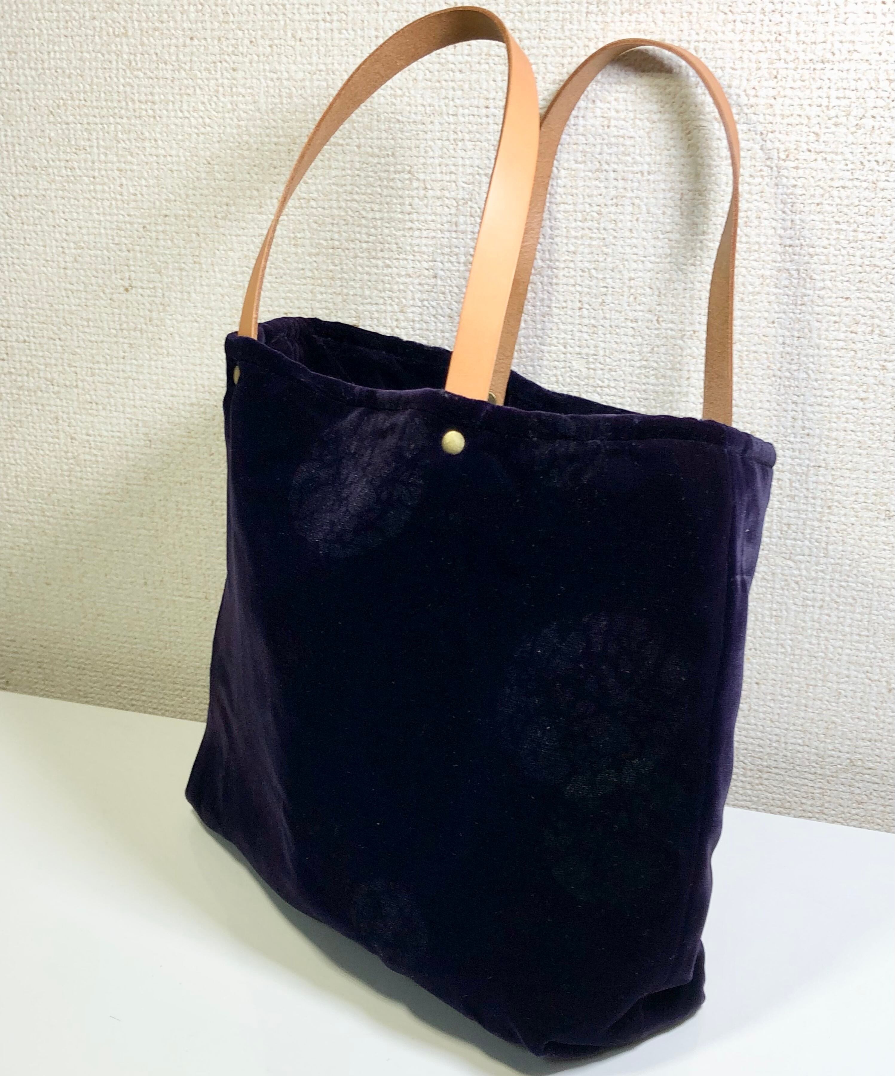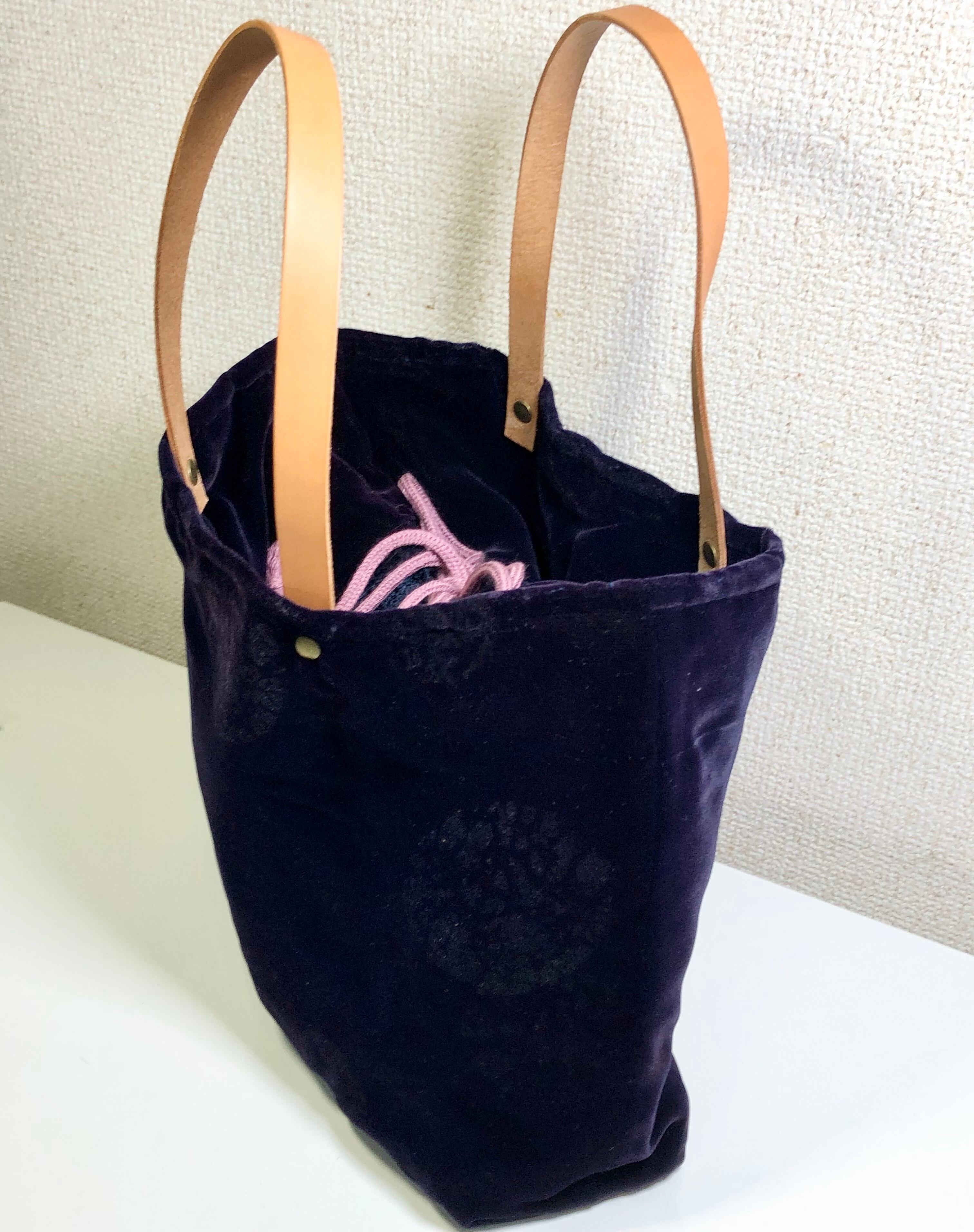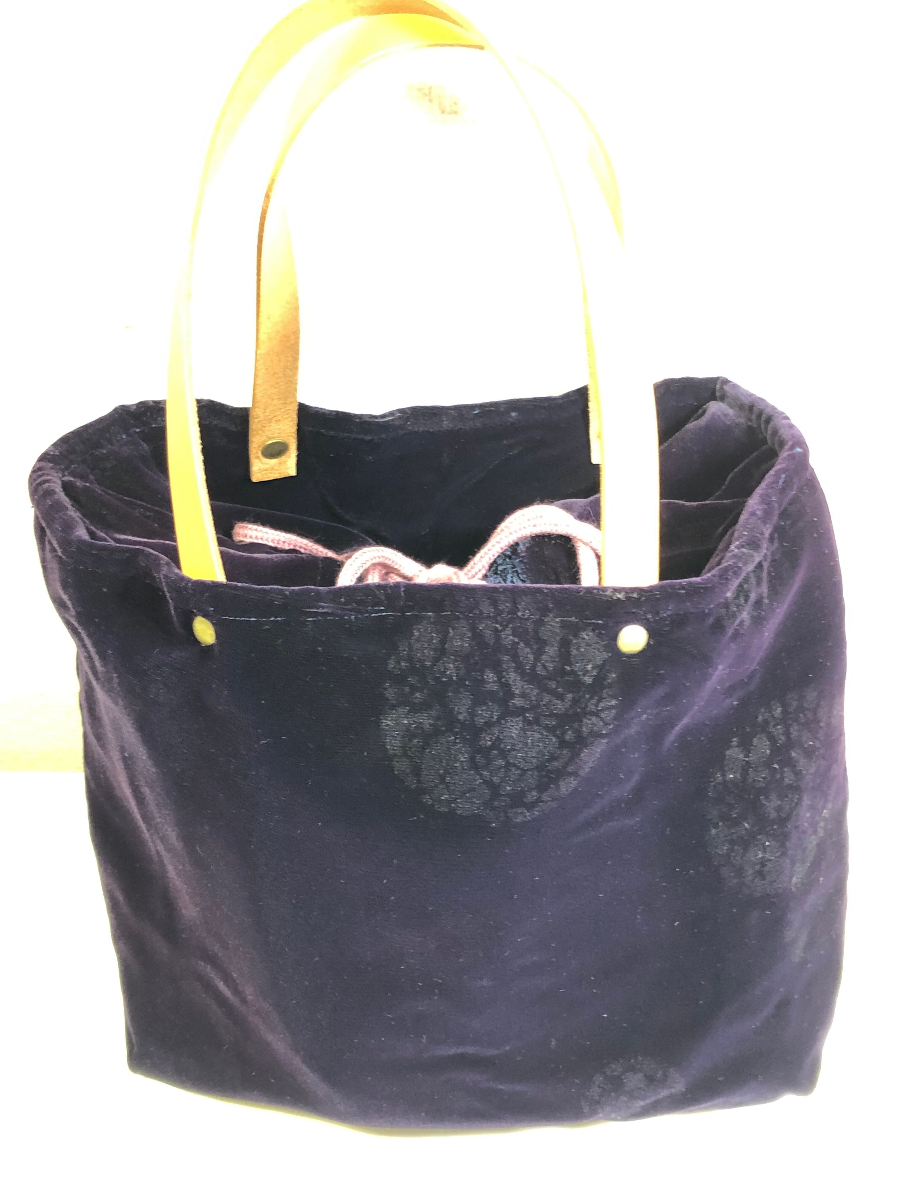 巾着も同じ別珍生地で、裏地はサテンシルク生地です。