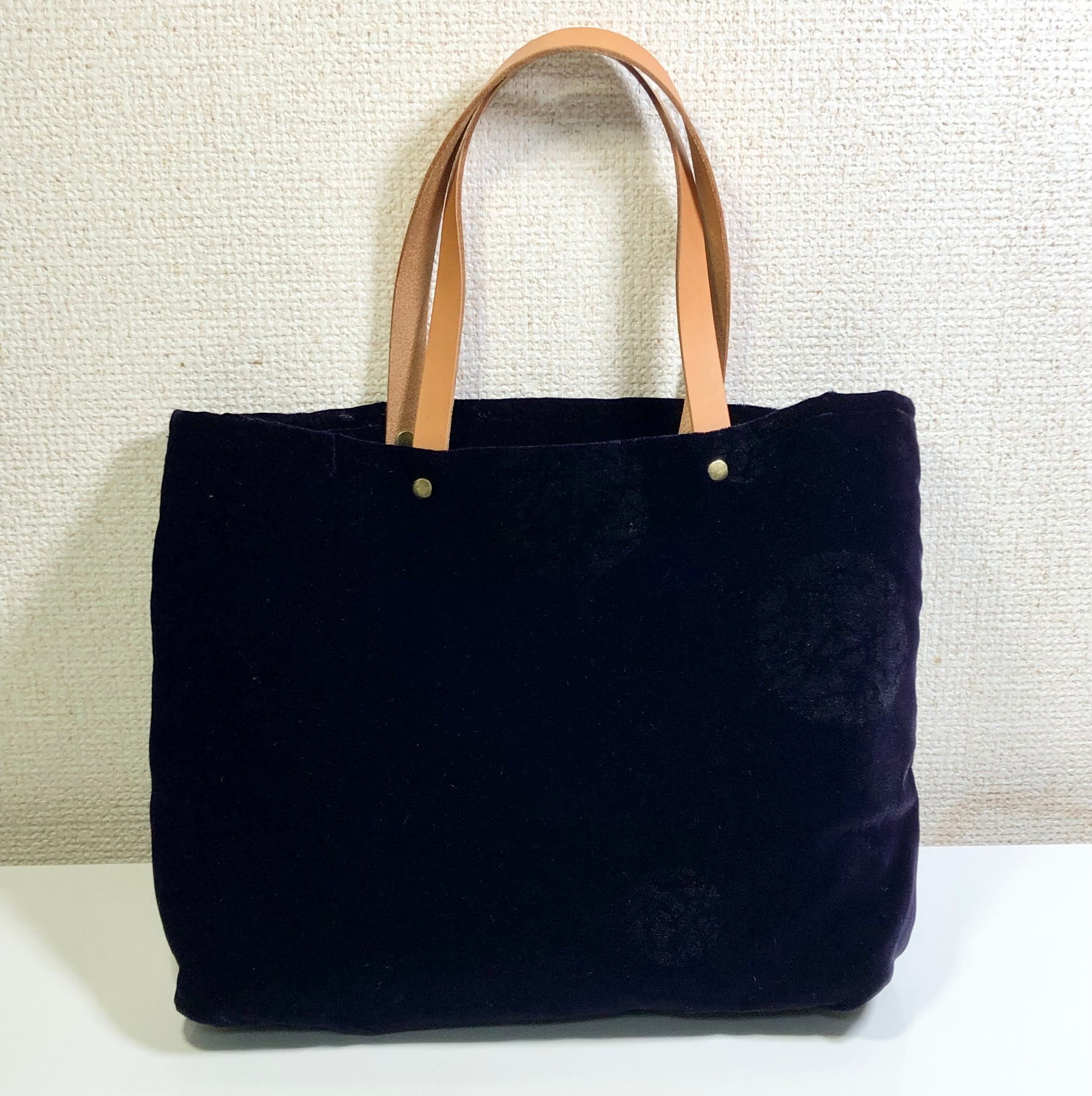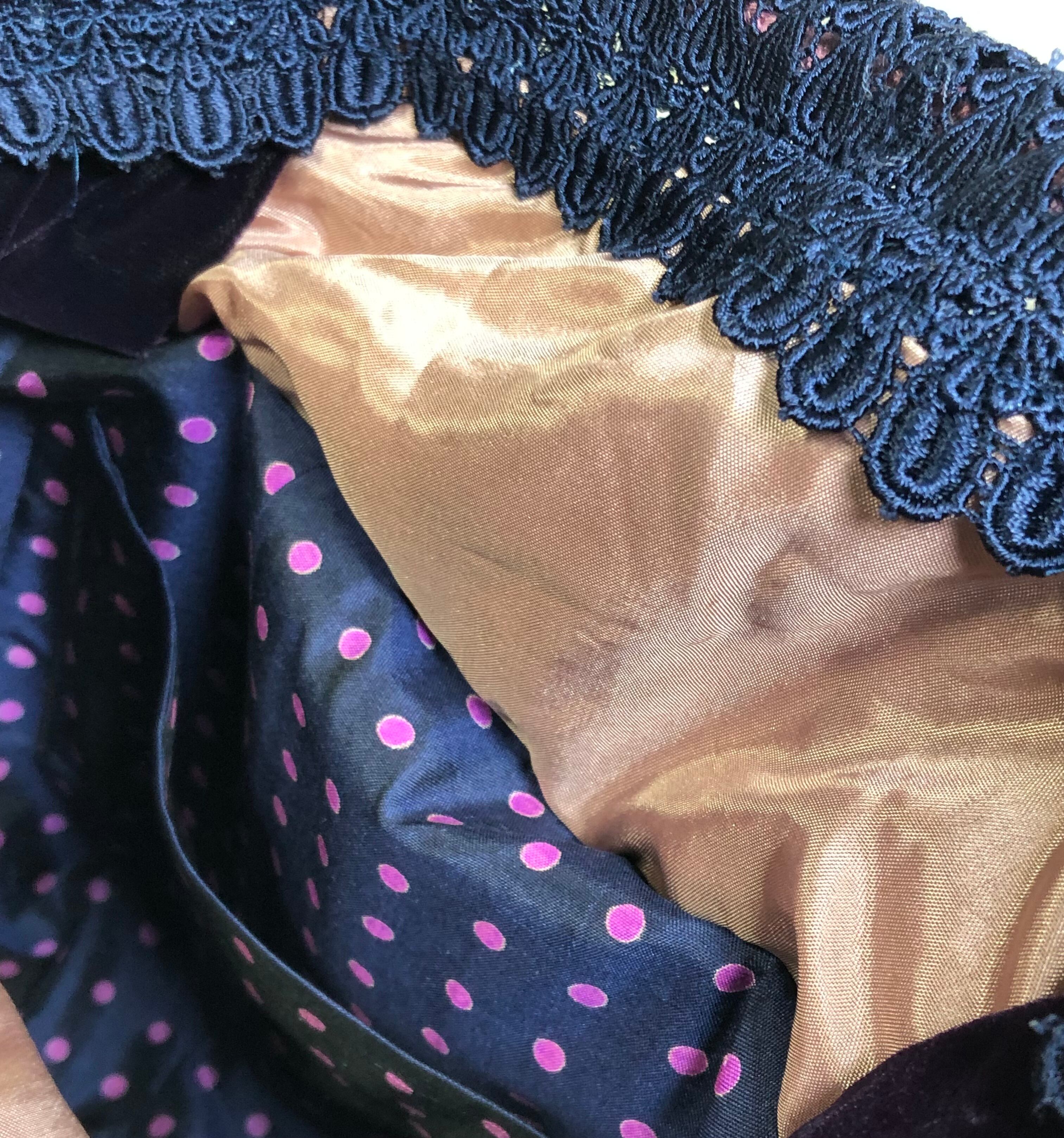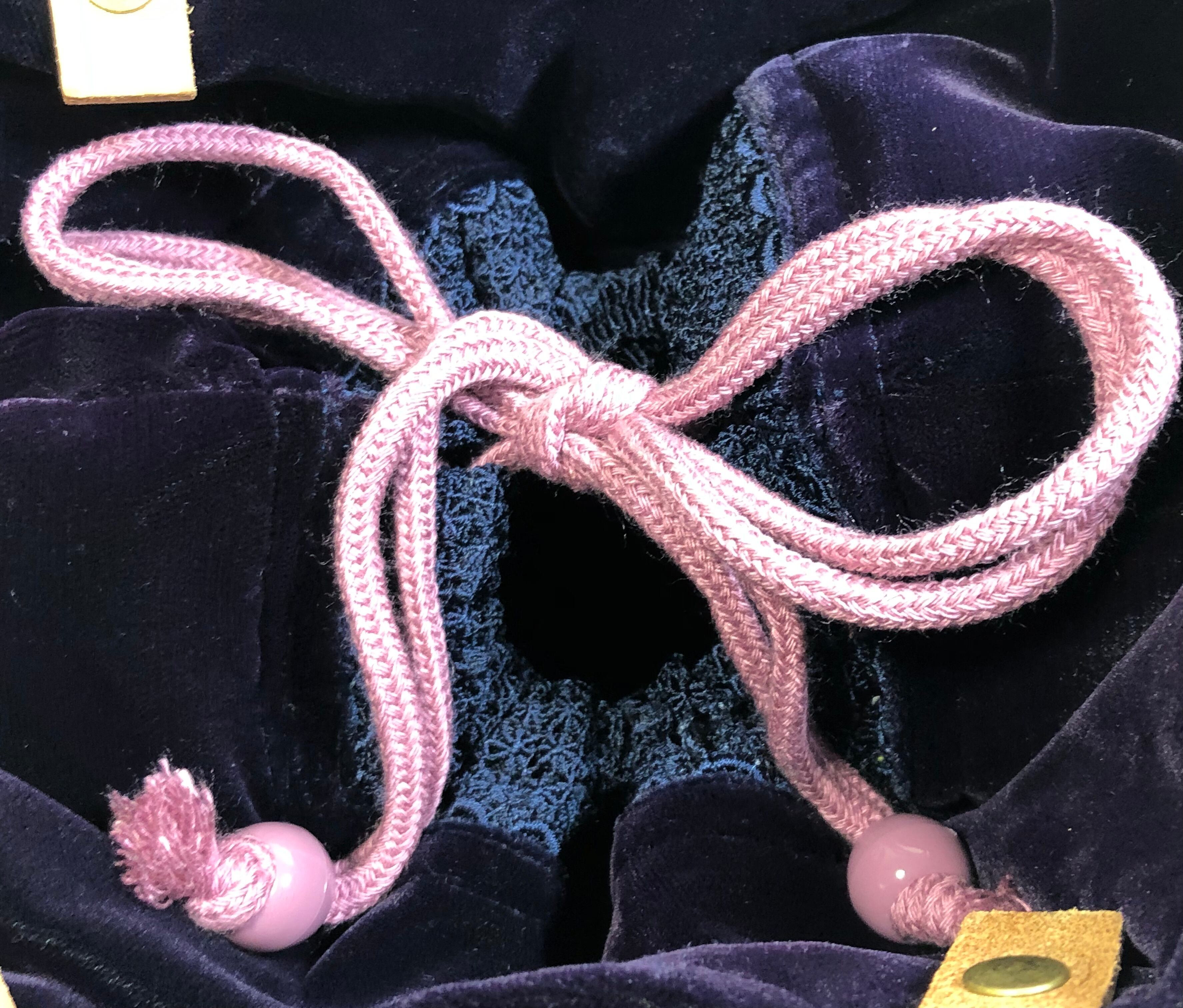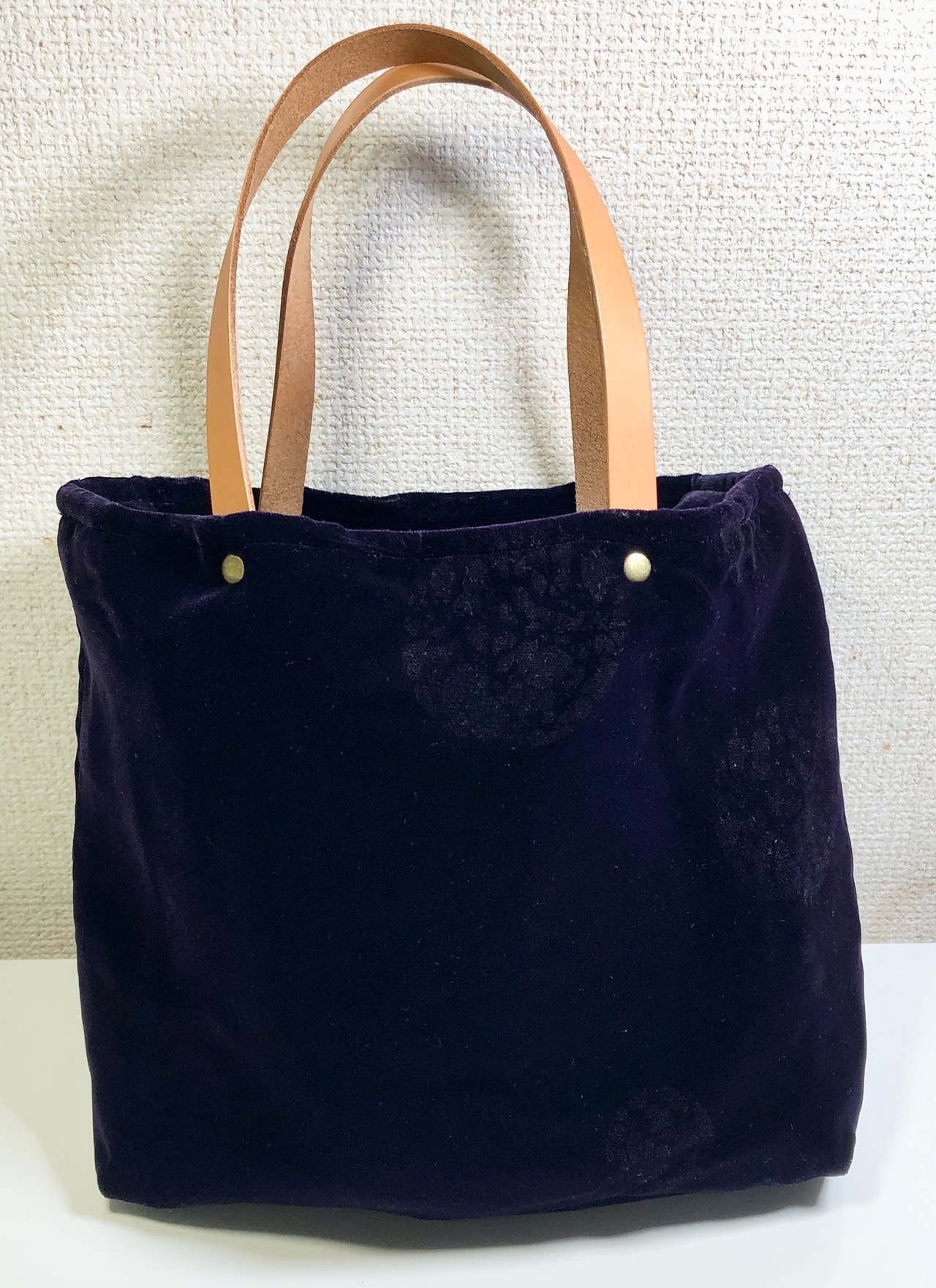 巾着も同じ別珍生地で、裏地はサテンシルク生地です。