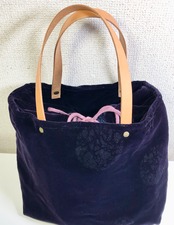 別珍ショール生地をリメイクし、サテンシルク生地と巾着トートバッグを作りました。