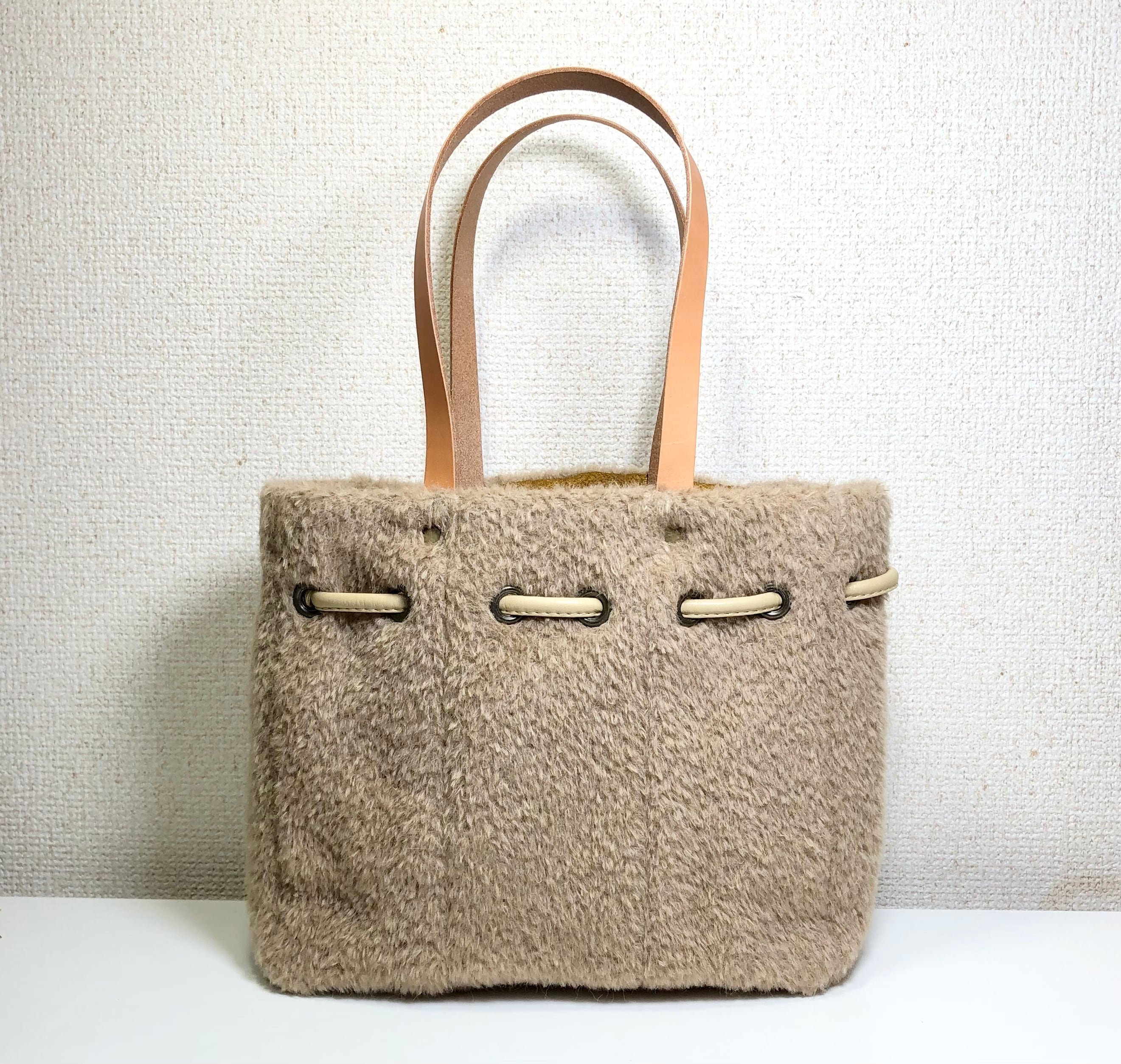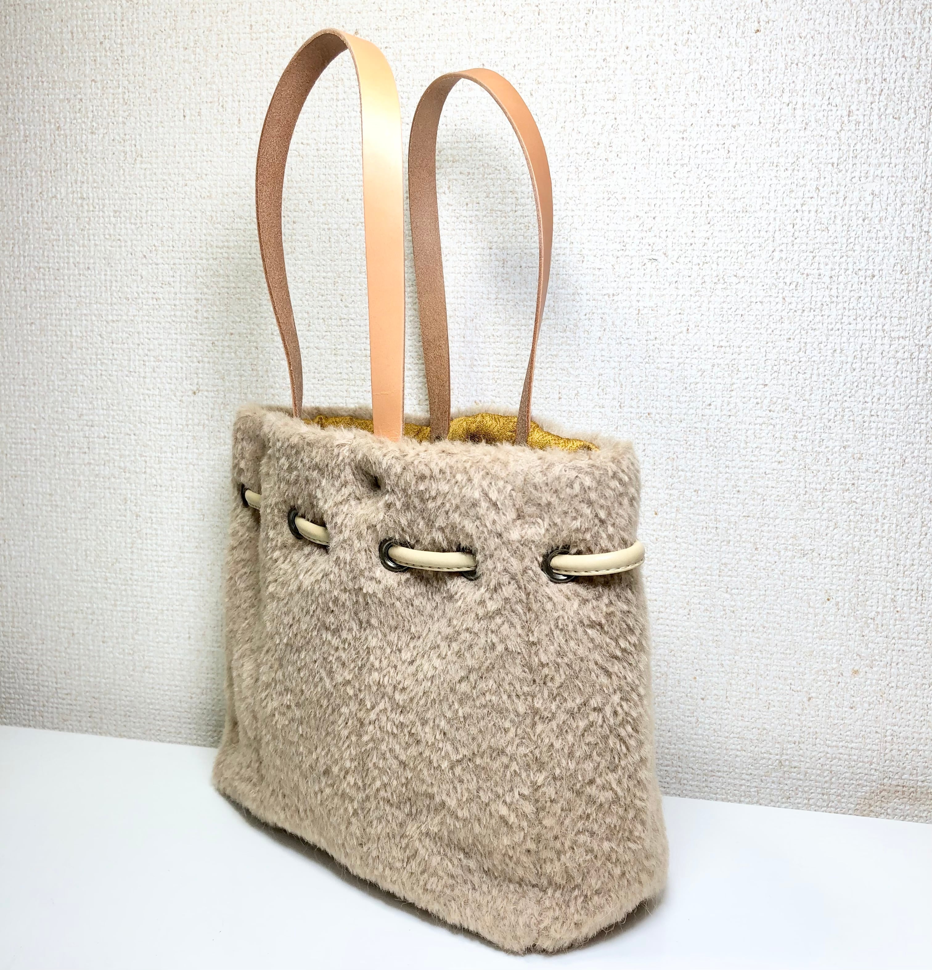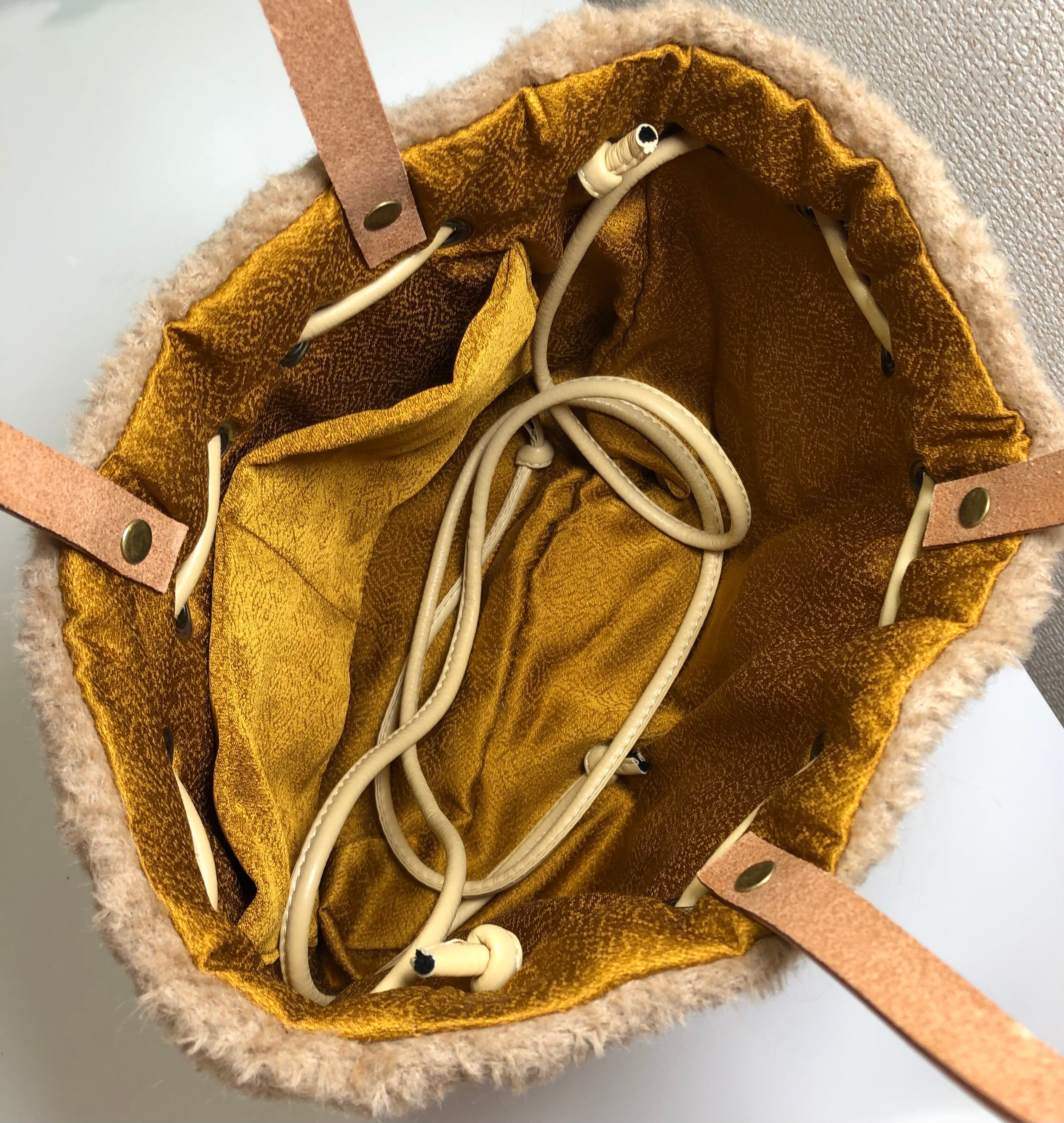 MAX MARAコートリメイクウール(アンゴラ、カシミヤ)生地と着物生地で巾着トートバッグを作りました。