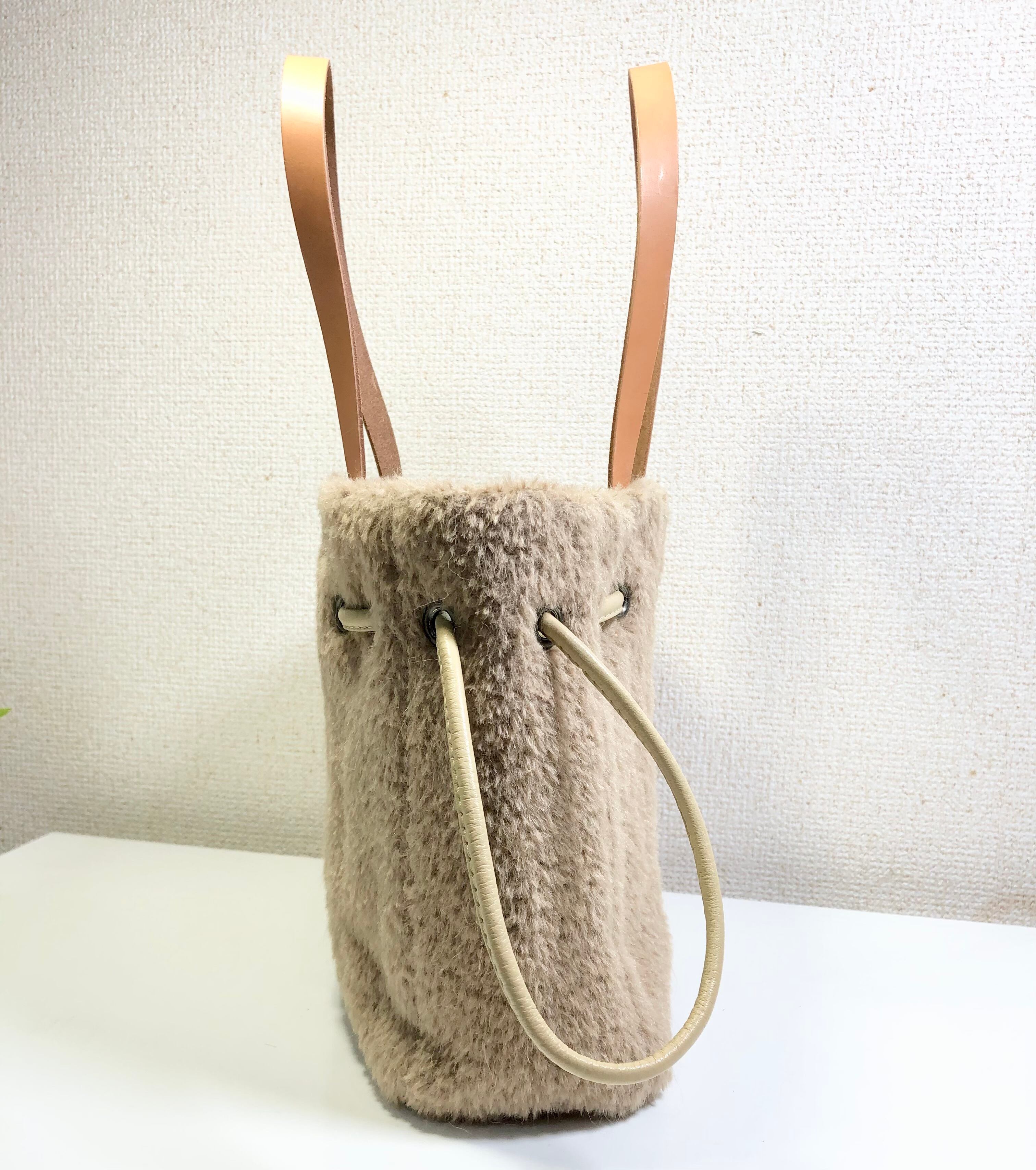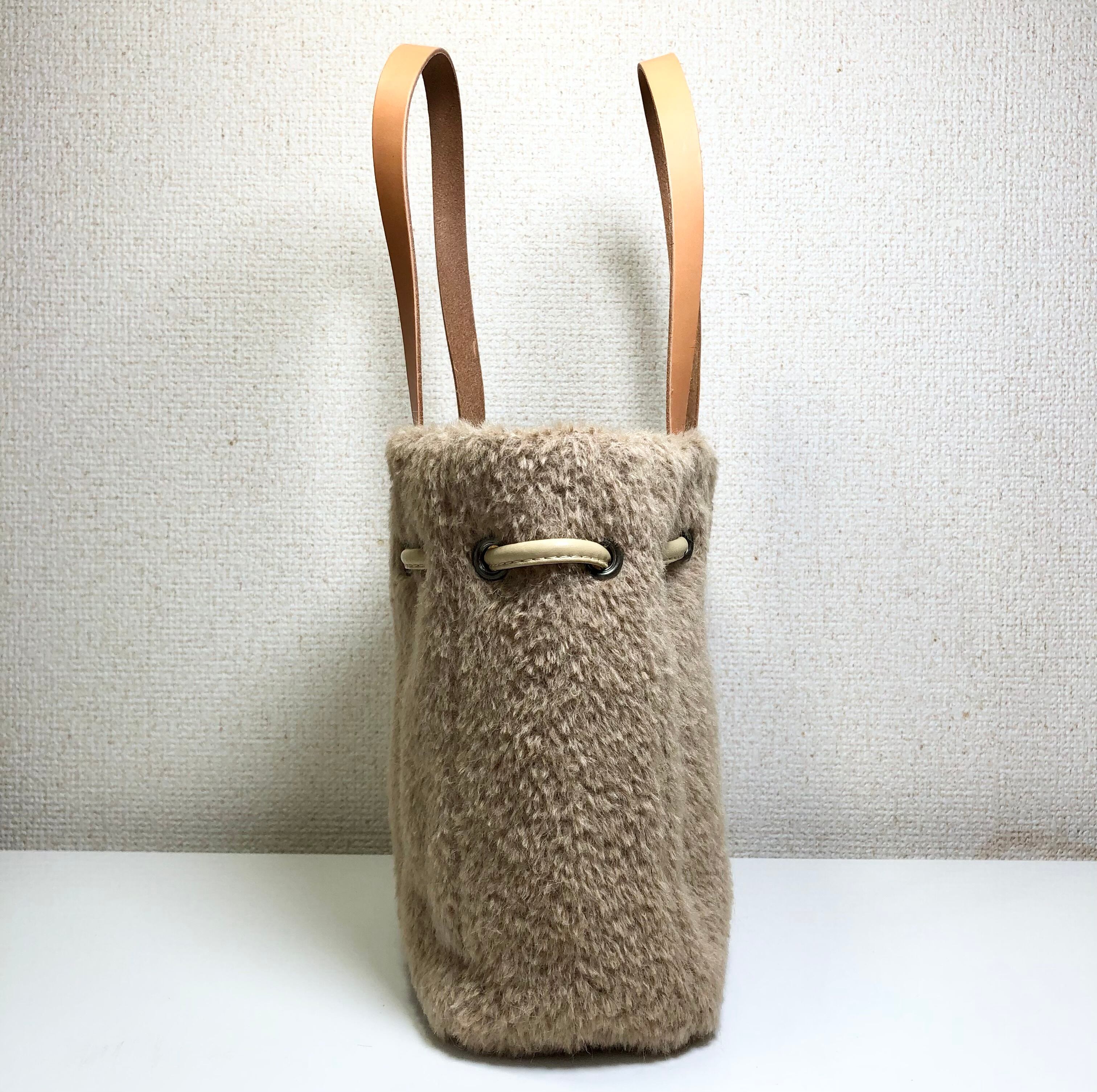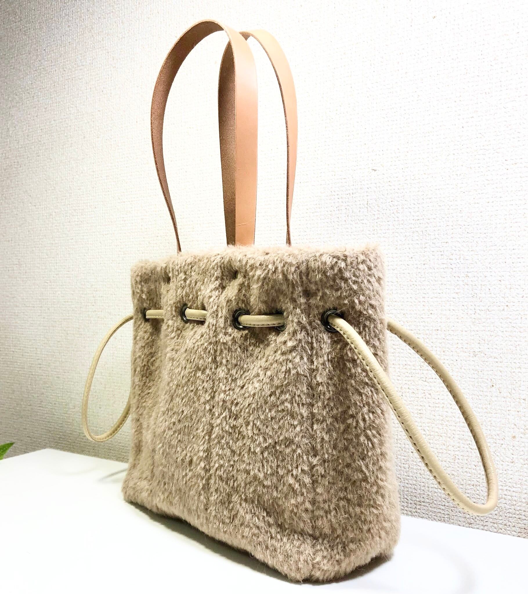 MAX MARAコートリメイクウール(アンゴラ、カシミヤ)生地と着物生地で巾着トートバッグを作りました。