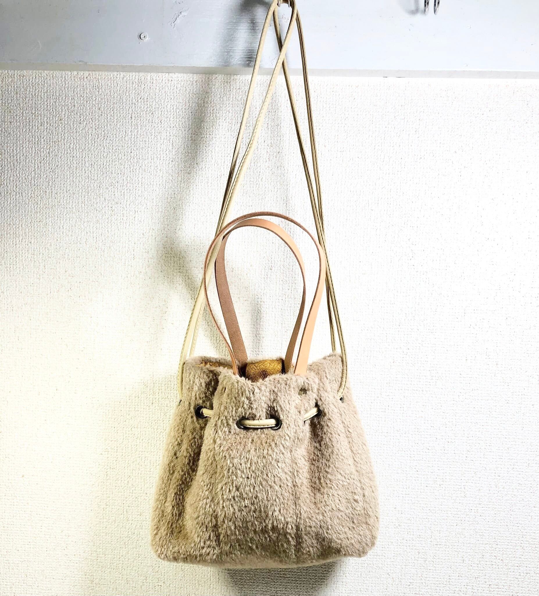 巾着紐を閉じて伸ばすとショルダーバッグになります。
