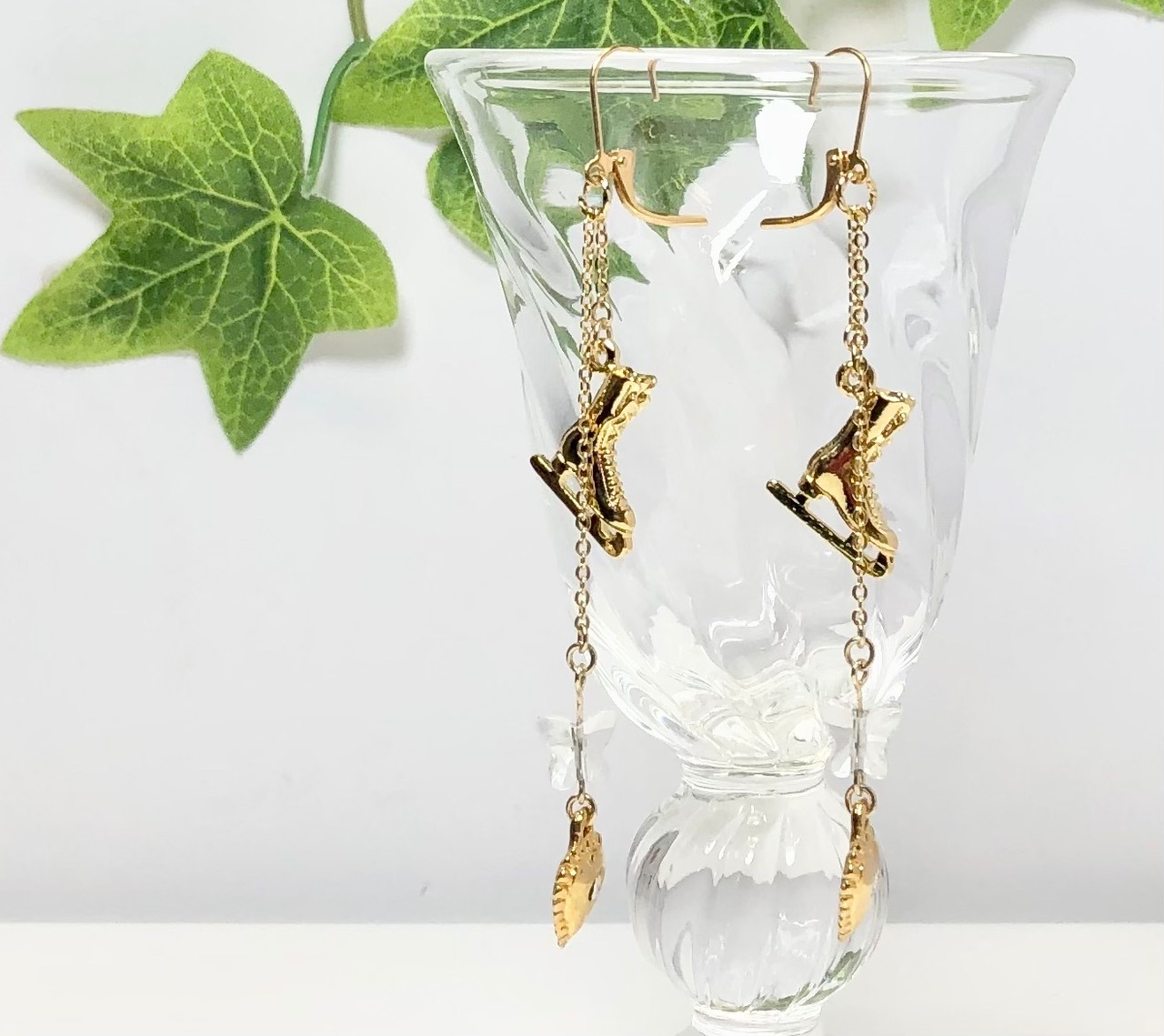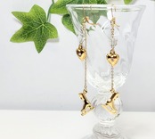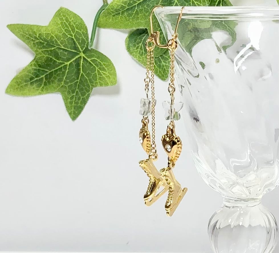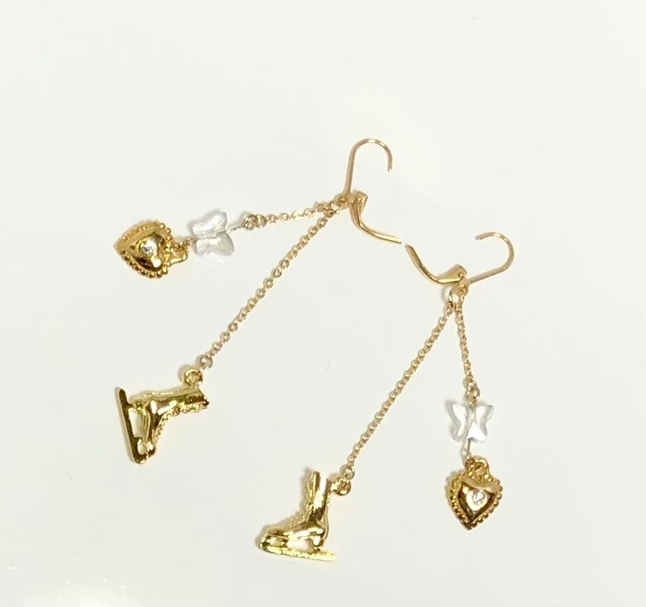 天然石バタフライ水晶とハートとスケート靴のピアス