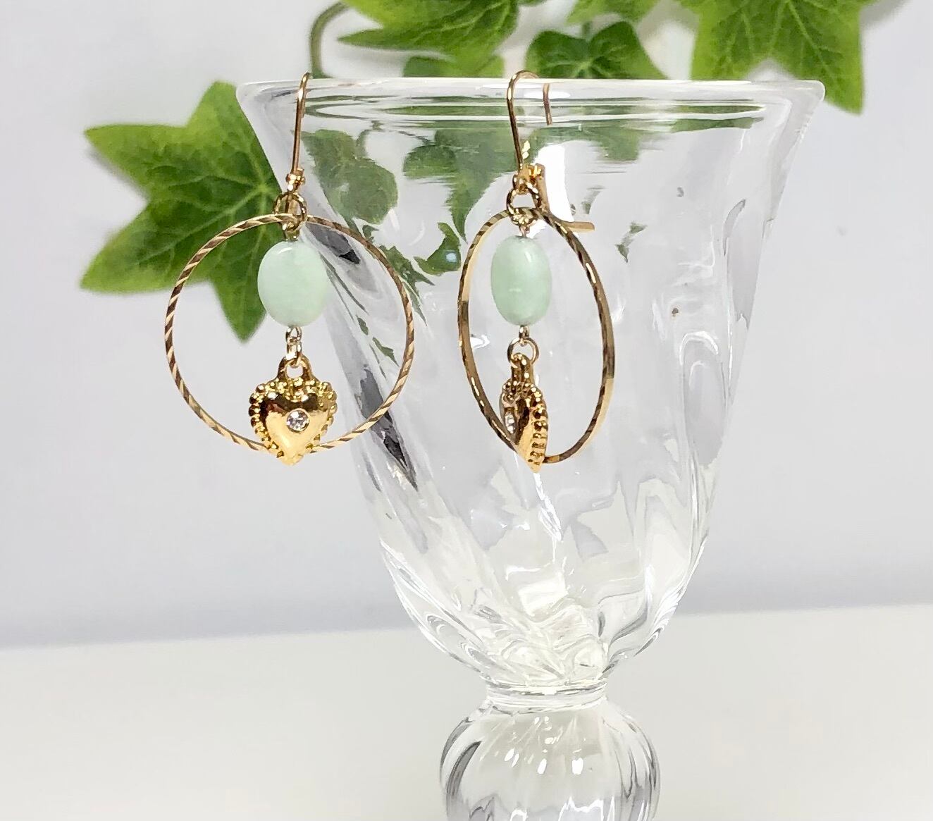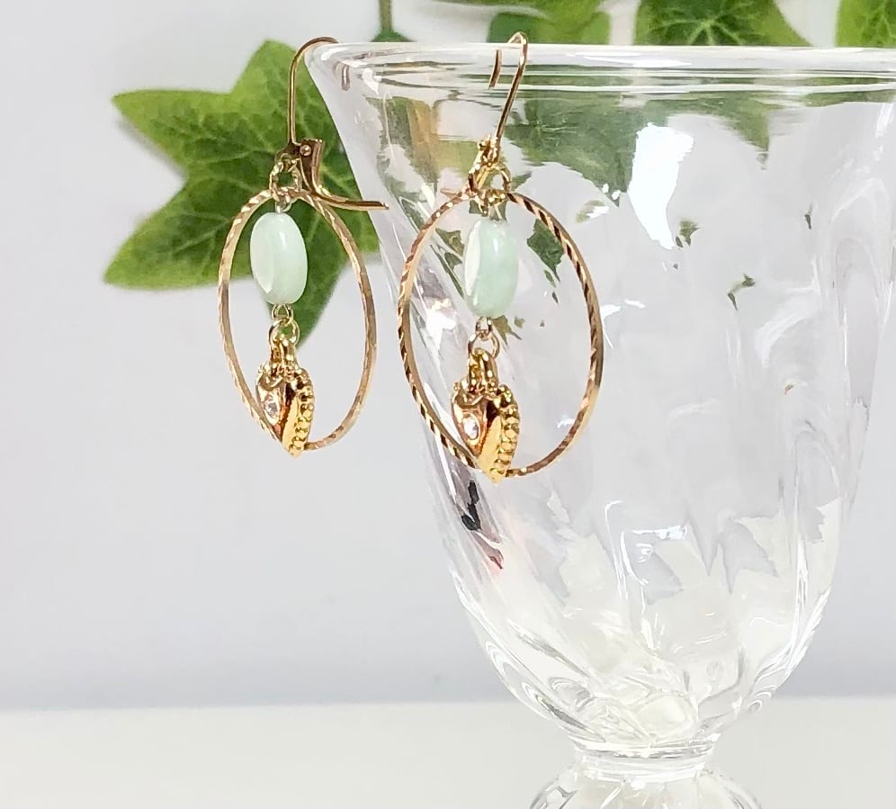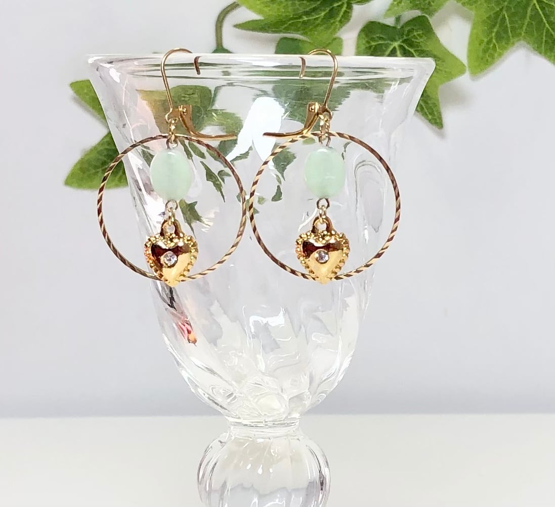 天然石アマゾナイトとハートのピアス