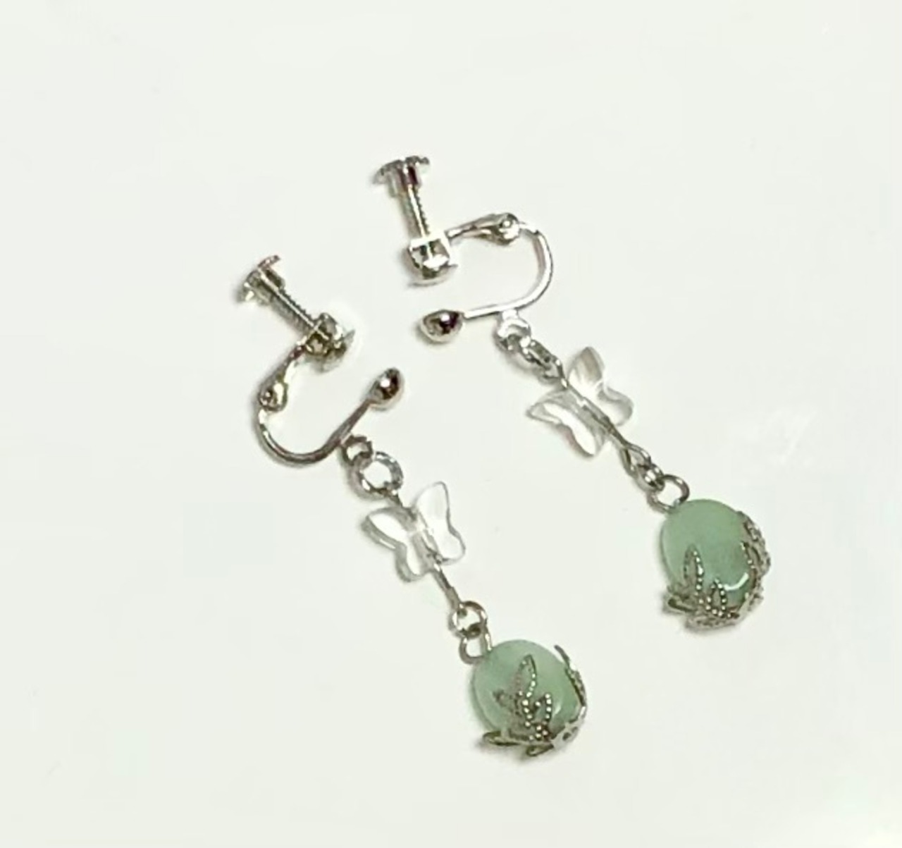 天然石アマゾナイトとバタフライ水晶のイヤリング