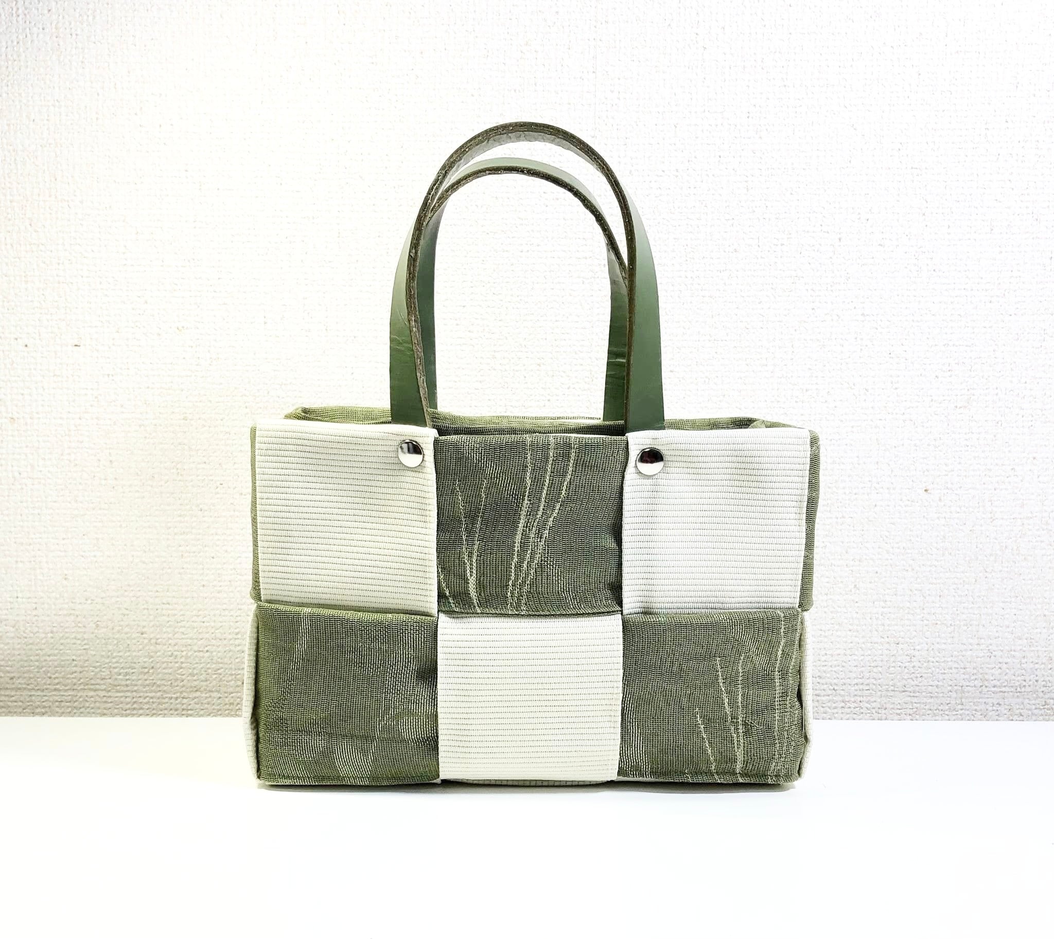 紗の帯(グリーン)と絽の名古屋帯を二本合わせてリメイクバッグを作りました。