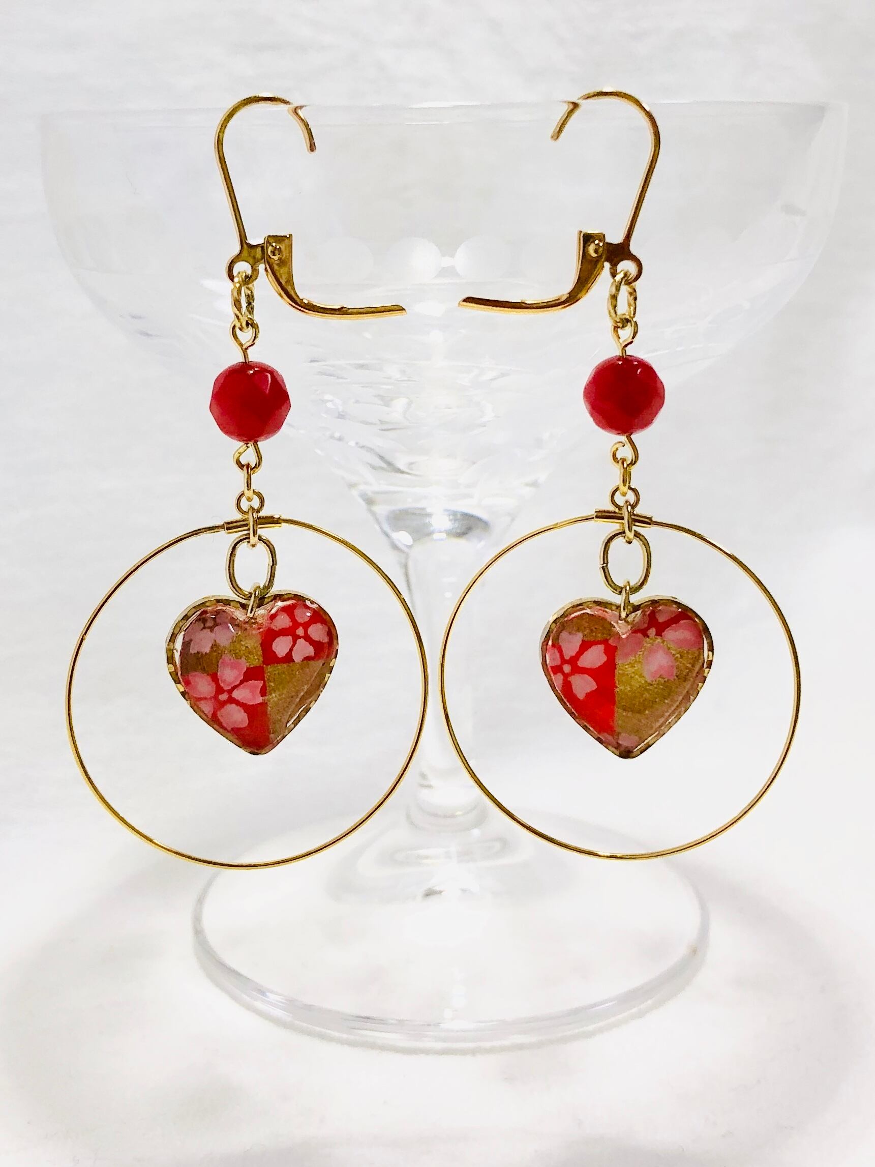 1891年創業二度と手に入らない手すき友禅和紙と天然石サンゴのピアス