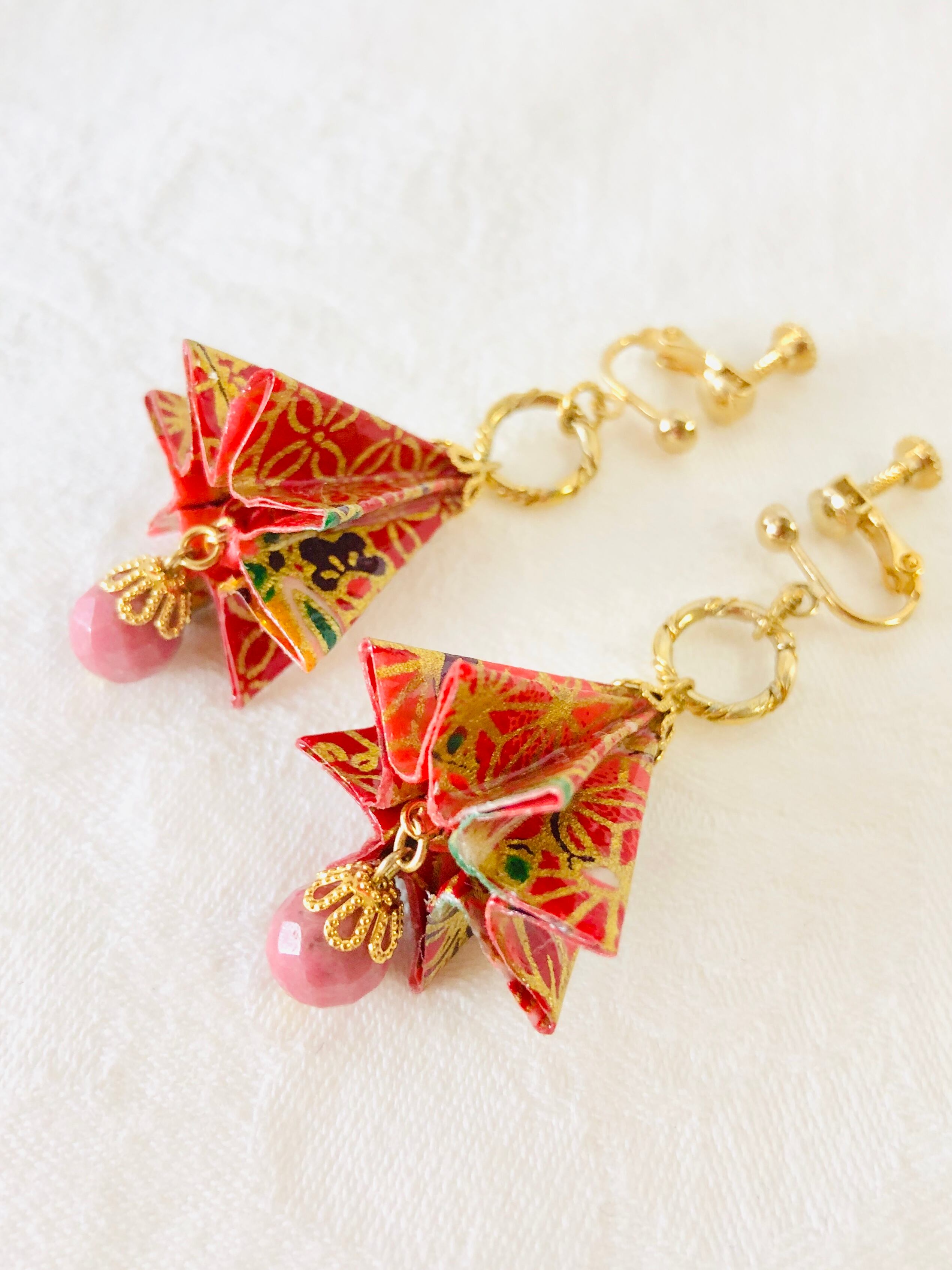 友禅和紙パワーストーン傘イヤリング(ロードナイト)