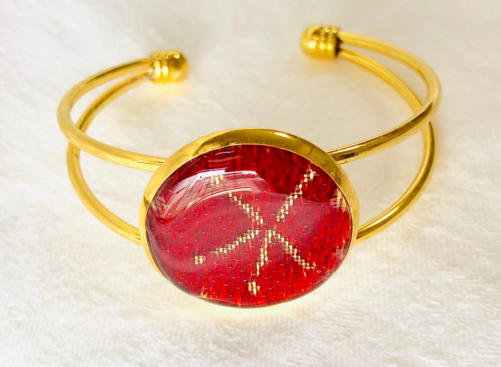 西陣織帯の正絹を使ってアクリル樹脂コーティングしています。