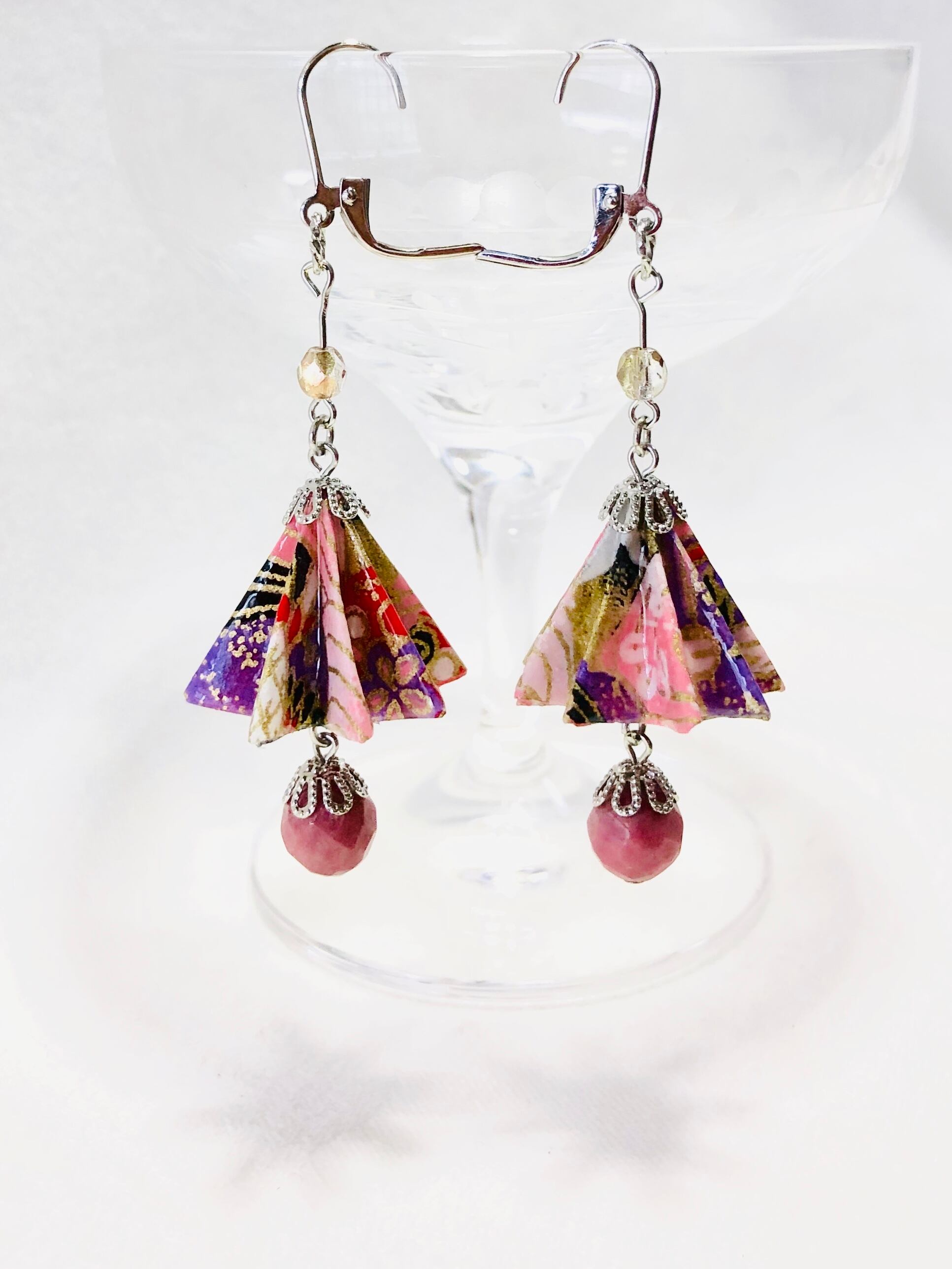 友禅和紙和傘パワーストーンピアス(ロードナイト)