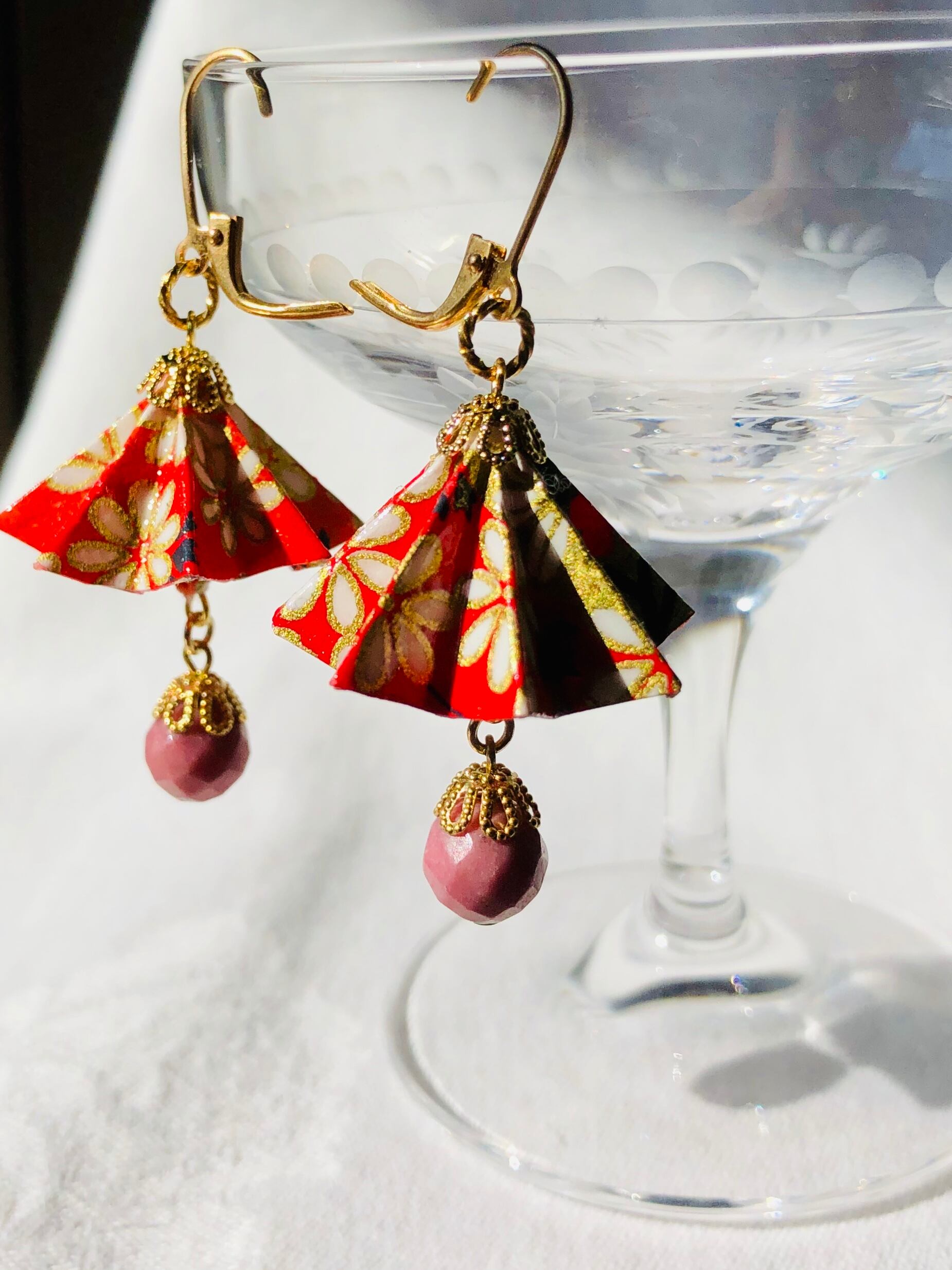 友禅和紙パワーストーンロードナイト和傘ピアス