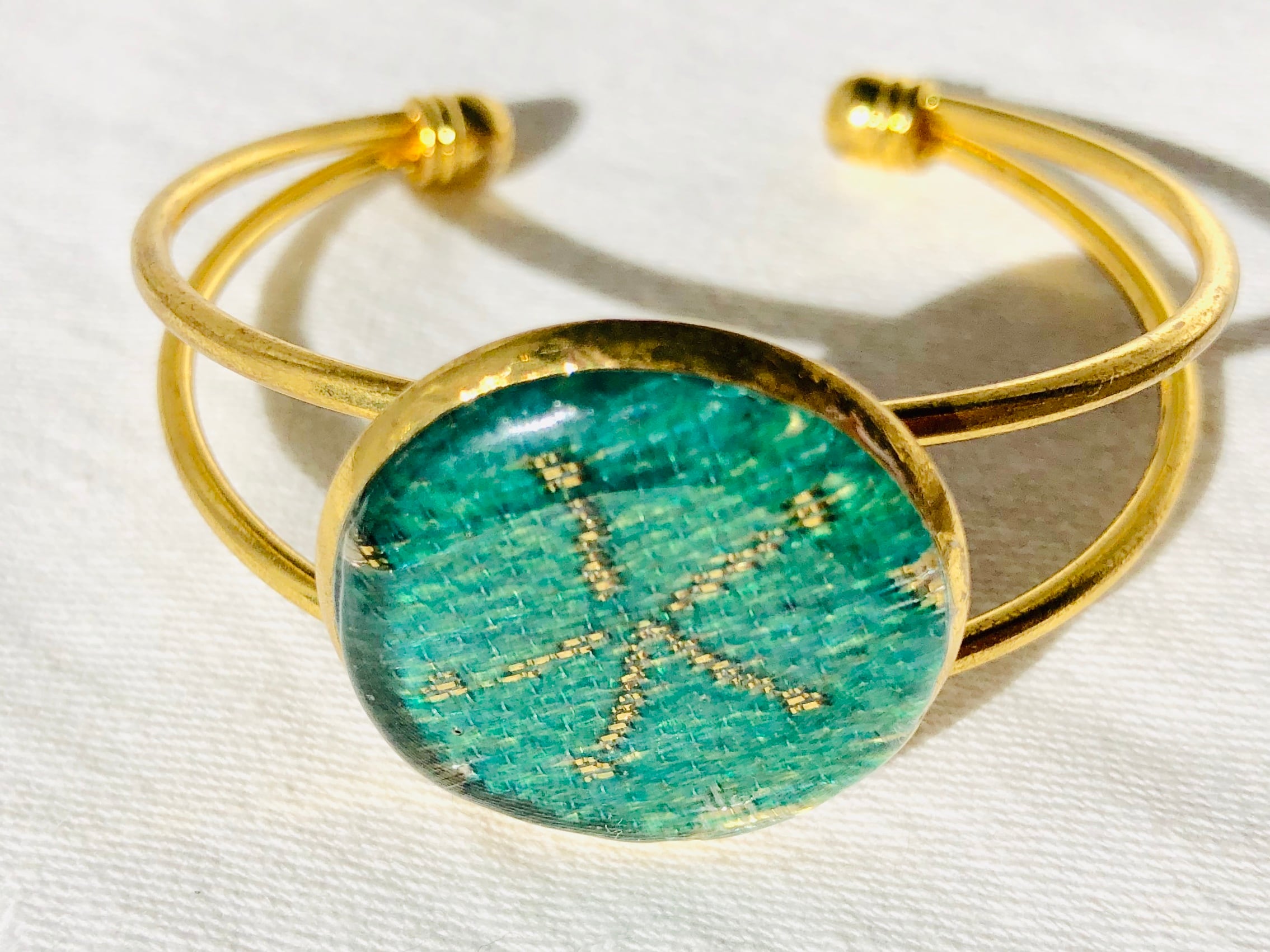 西陣織帯の正絹を使ってアクリル樹脂コーティングしています。