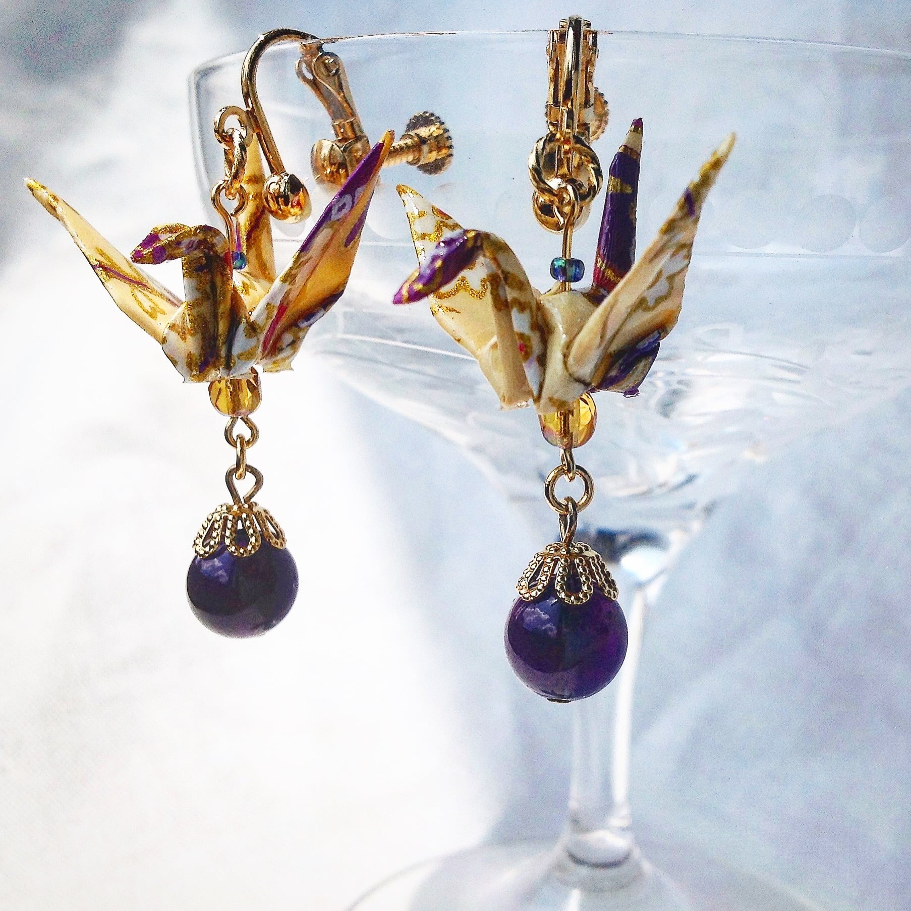 友禅和紙パワーストーン(アメジスト、トパーズ)イヤリング