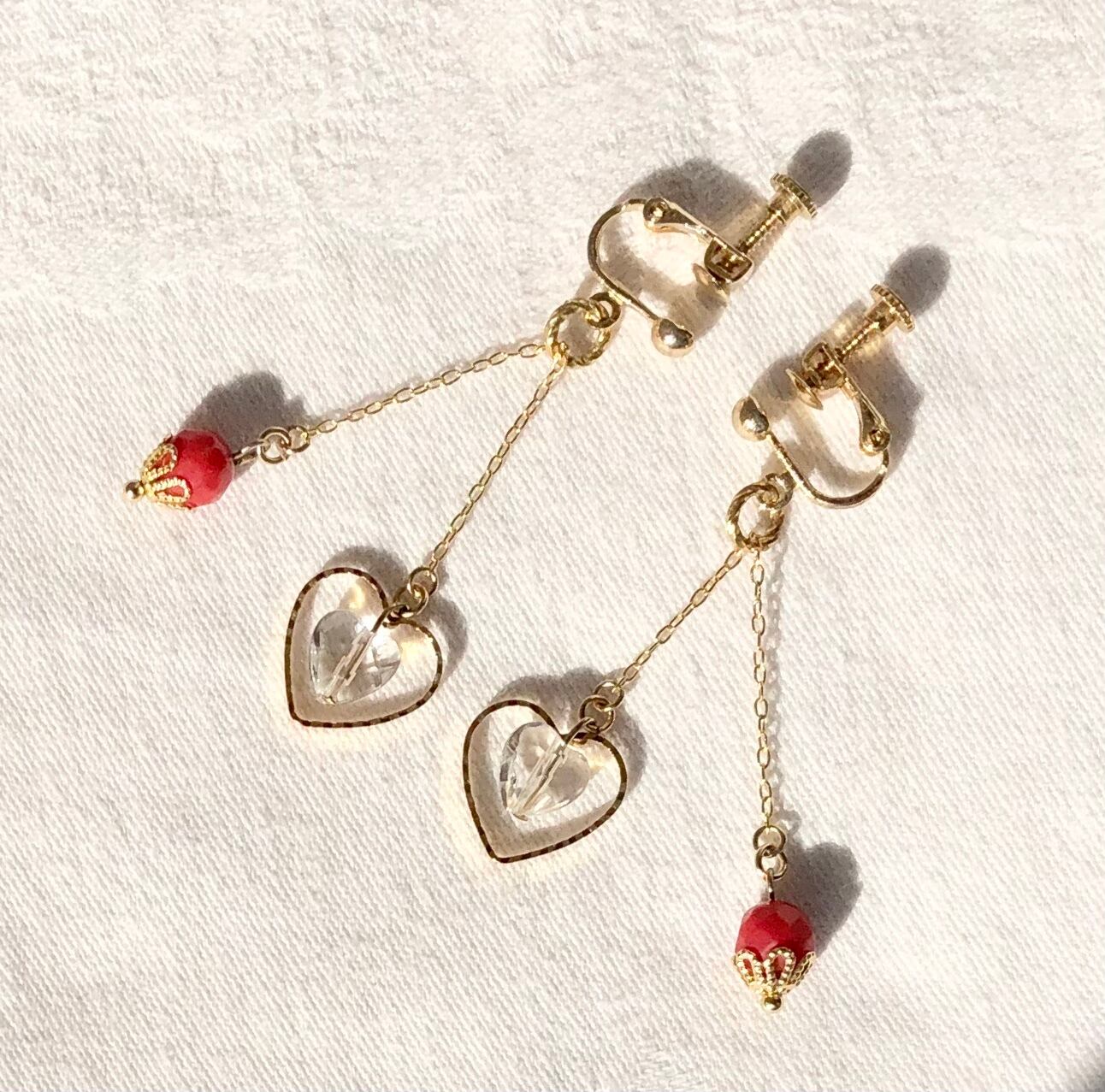 パワーストーンサンゴ&ハート水晶イヤリング