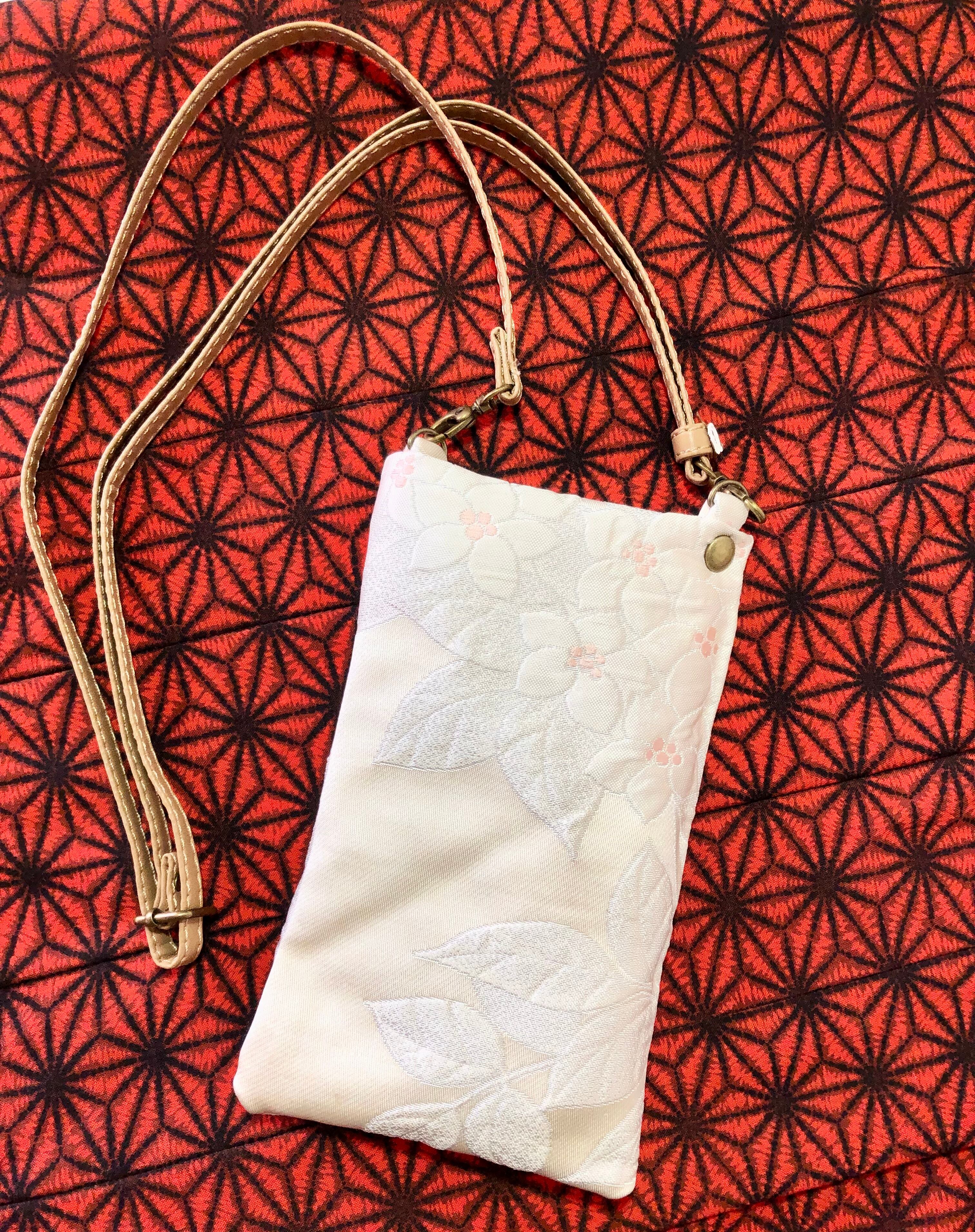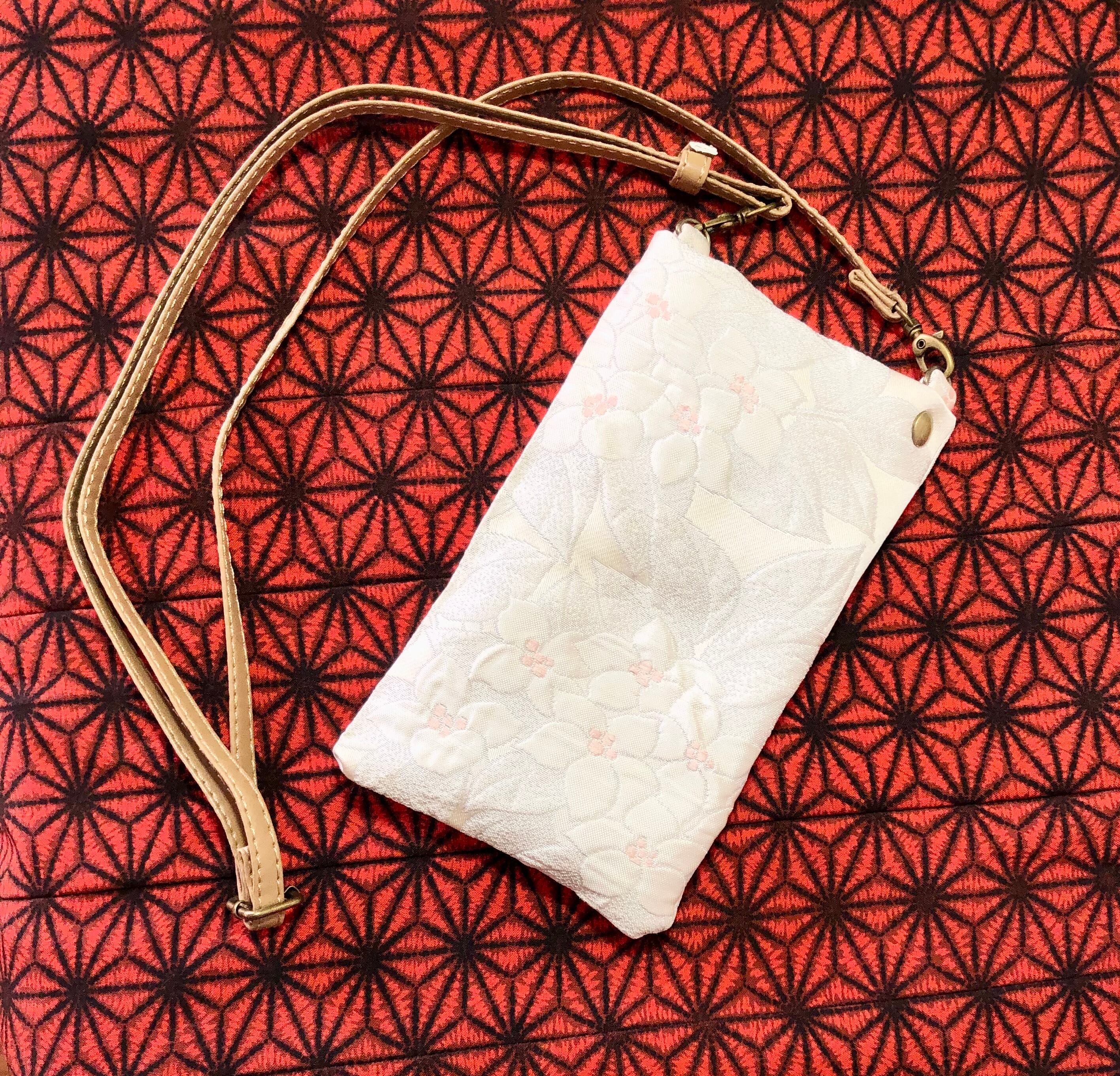 帯リメイクの携帯ケースミニショルダーバッグ