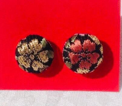 西陣織帯の正絹を使用した桜柄ピアス
