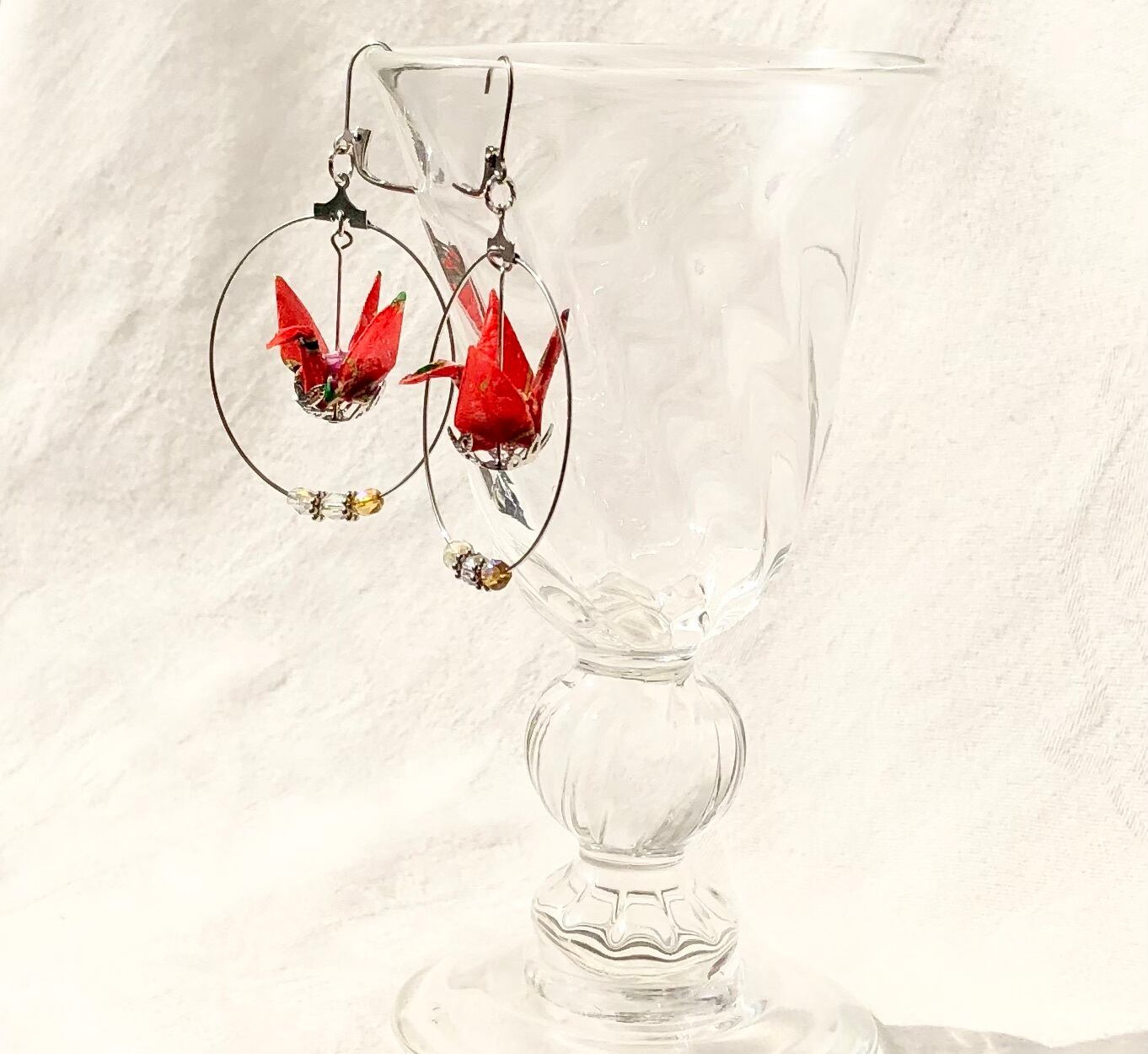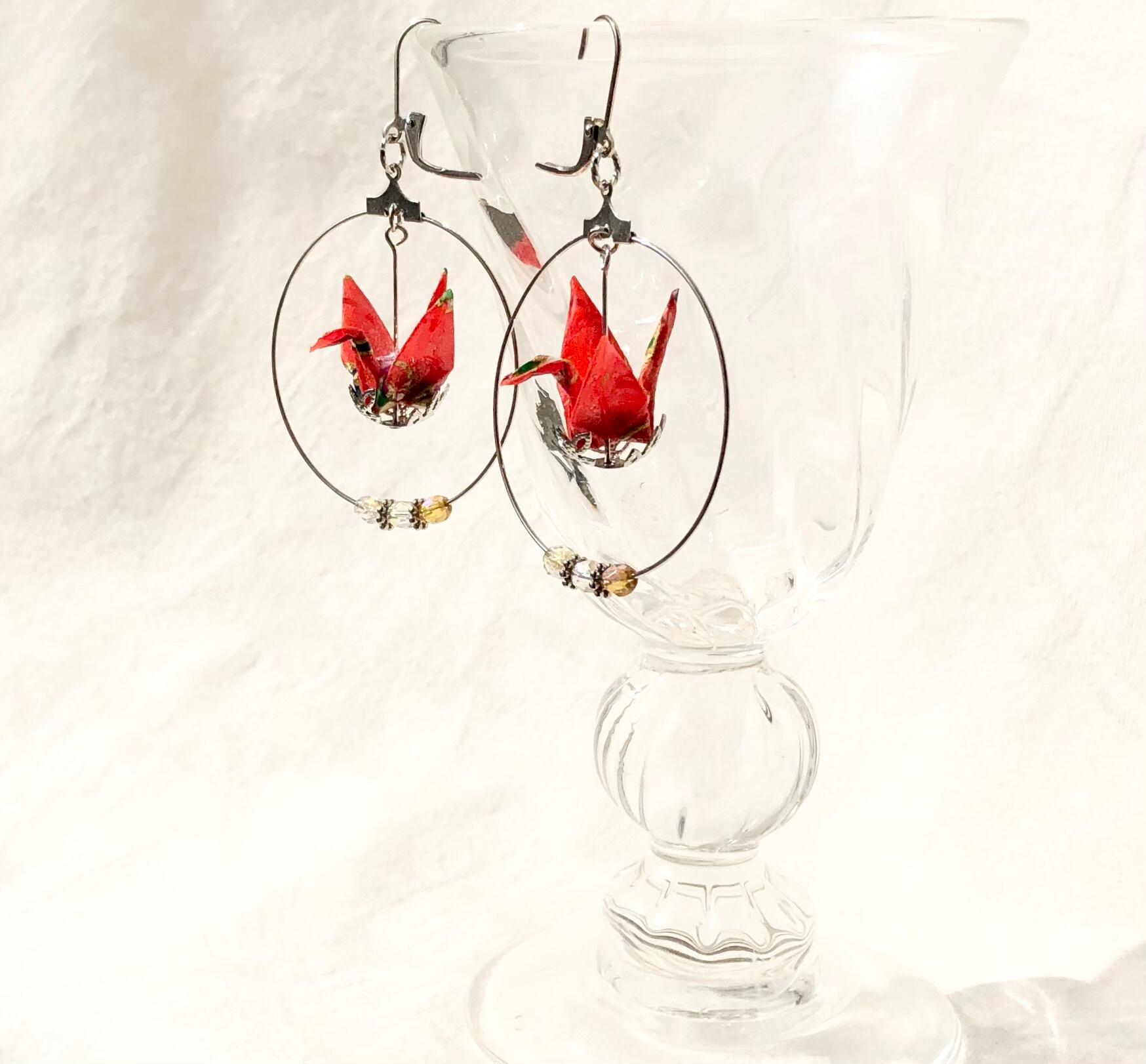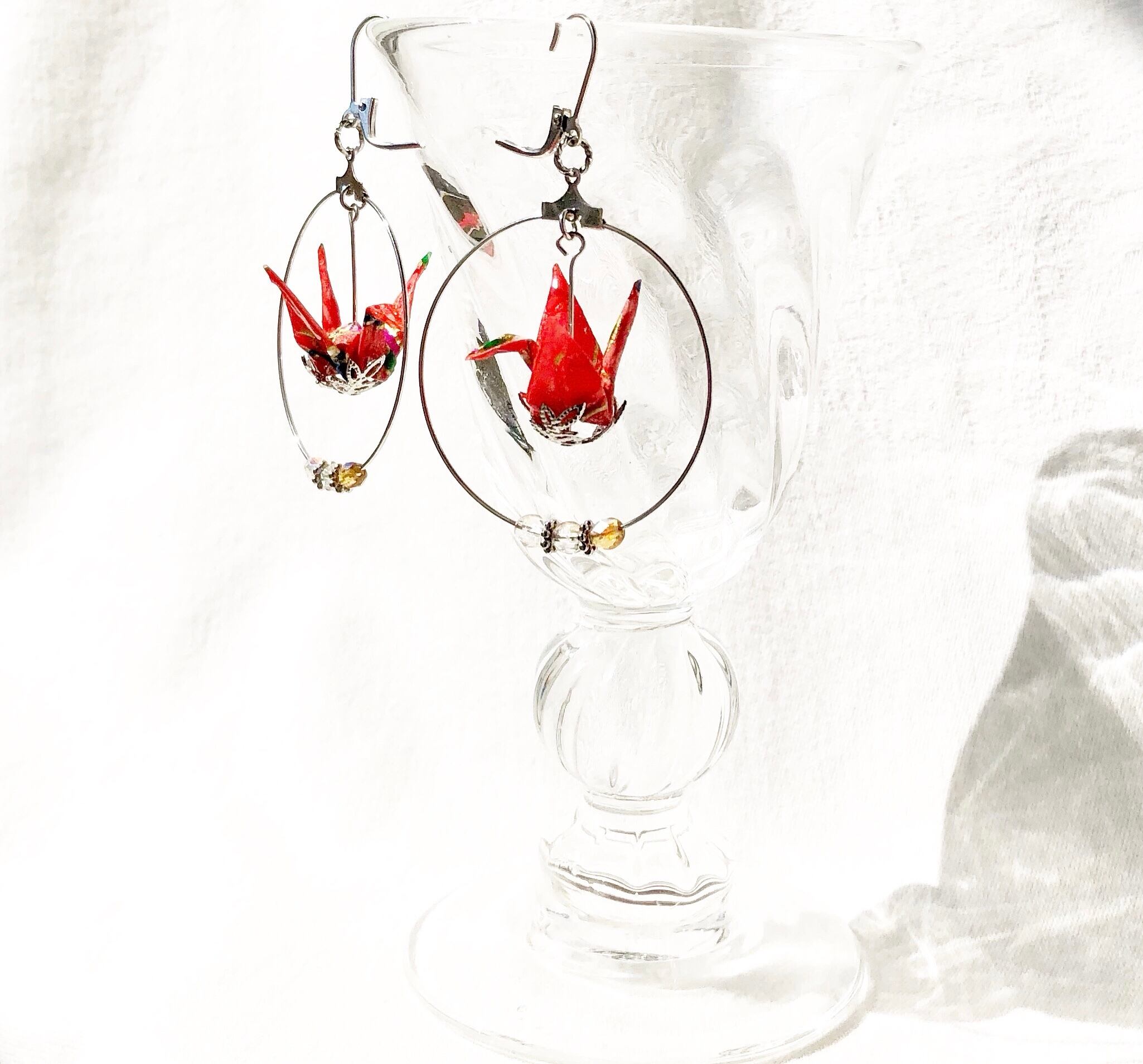 手漉き友禅和紙の鶴のピアス