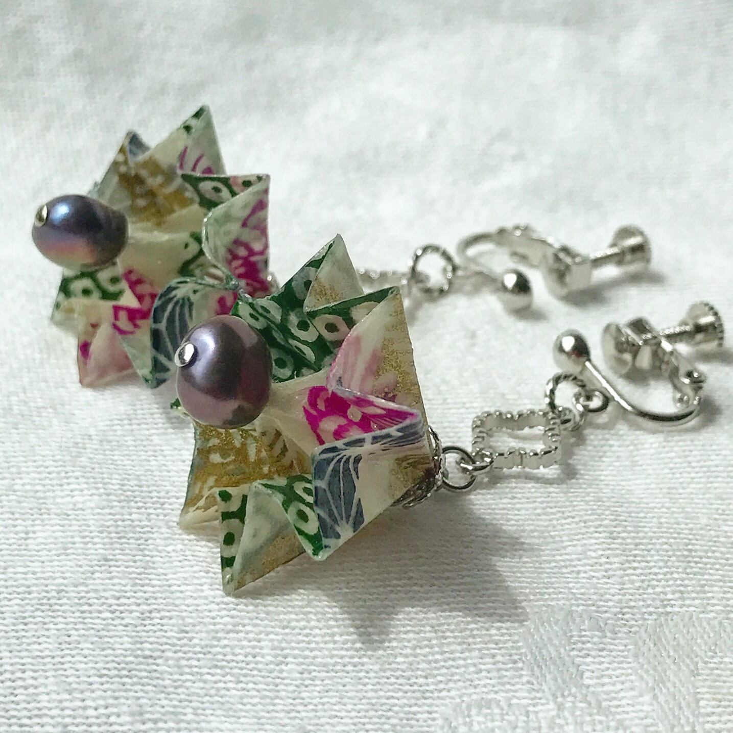 手すき友禅和紙で和傘とパールのハンドメイド。