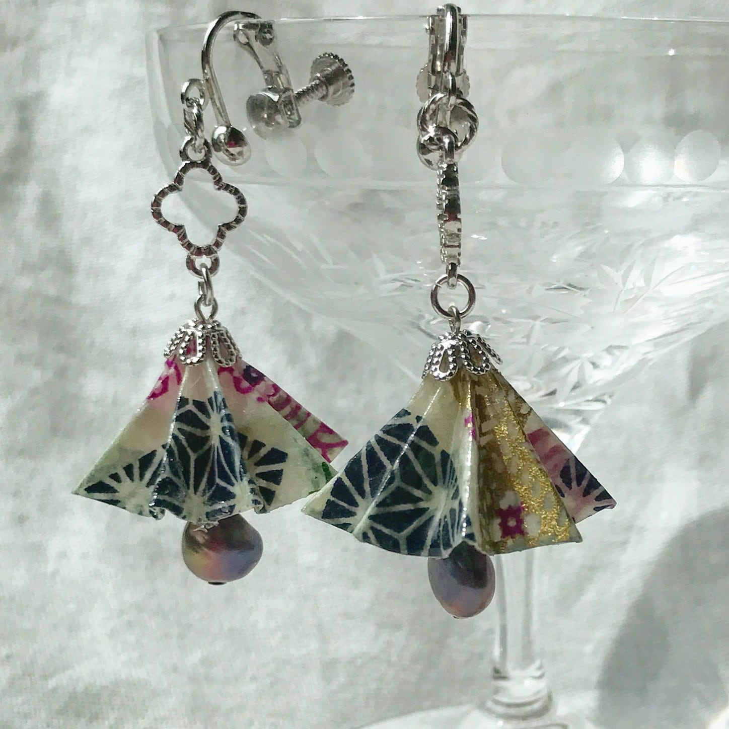 友禅和紙和傘イヤリング