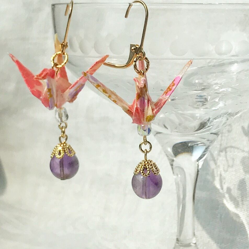 友禅和紙パワーストーン(アメジスト、トパーズ)ピアス