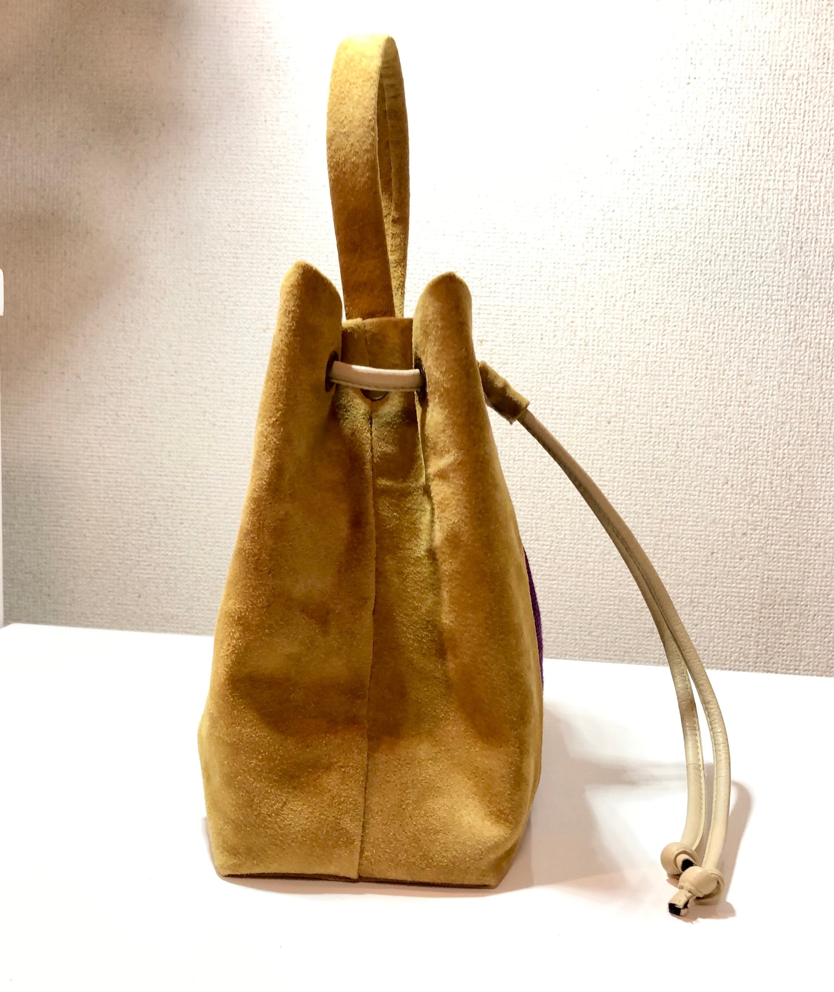 裏地もピッグスェードなのでとてもしっかりしています。持ち手はレザーにスェードレザーをカバーしています。