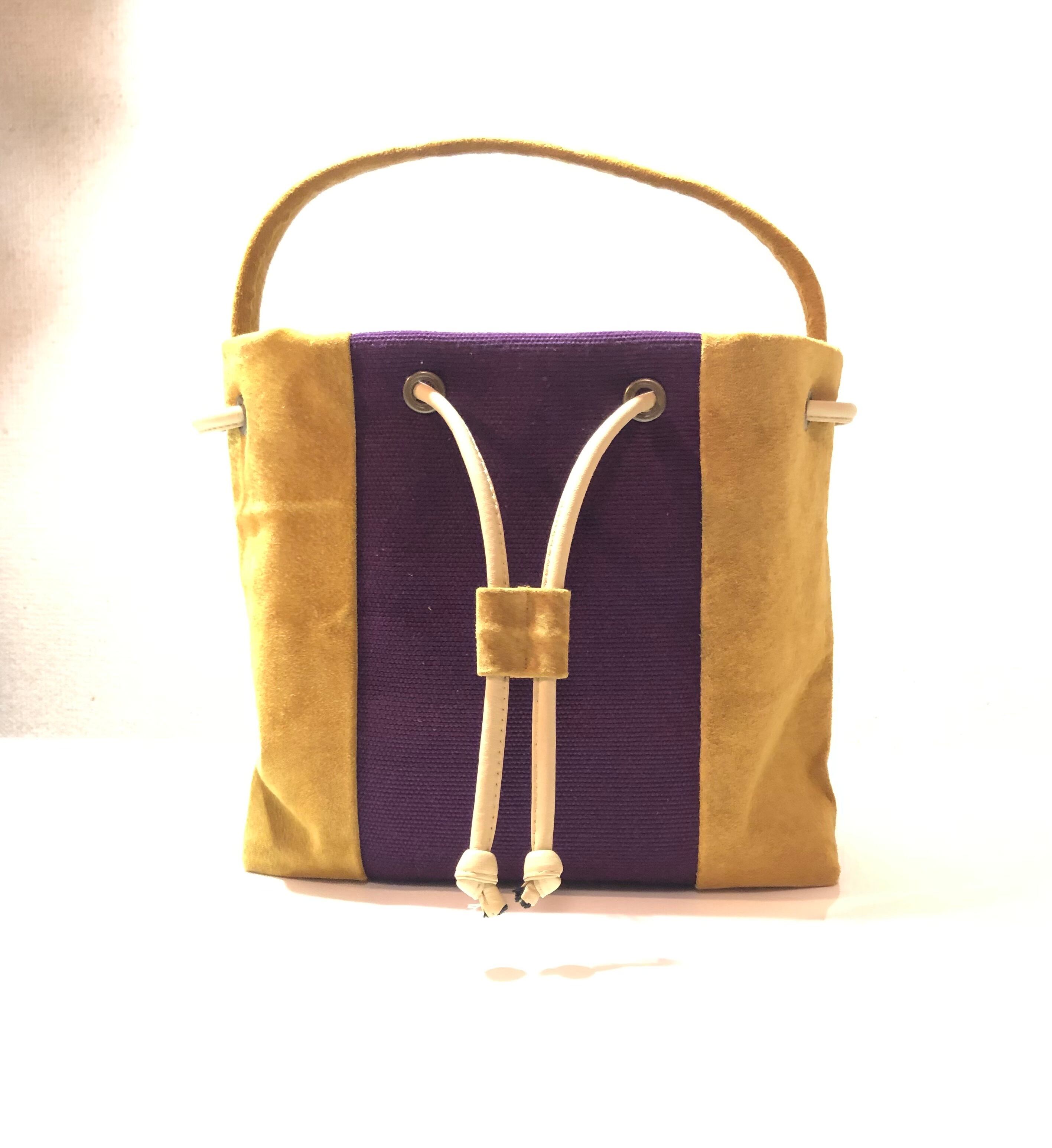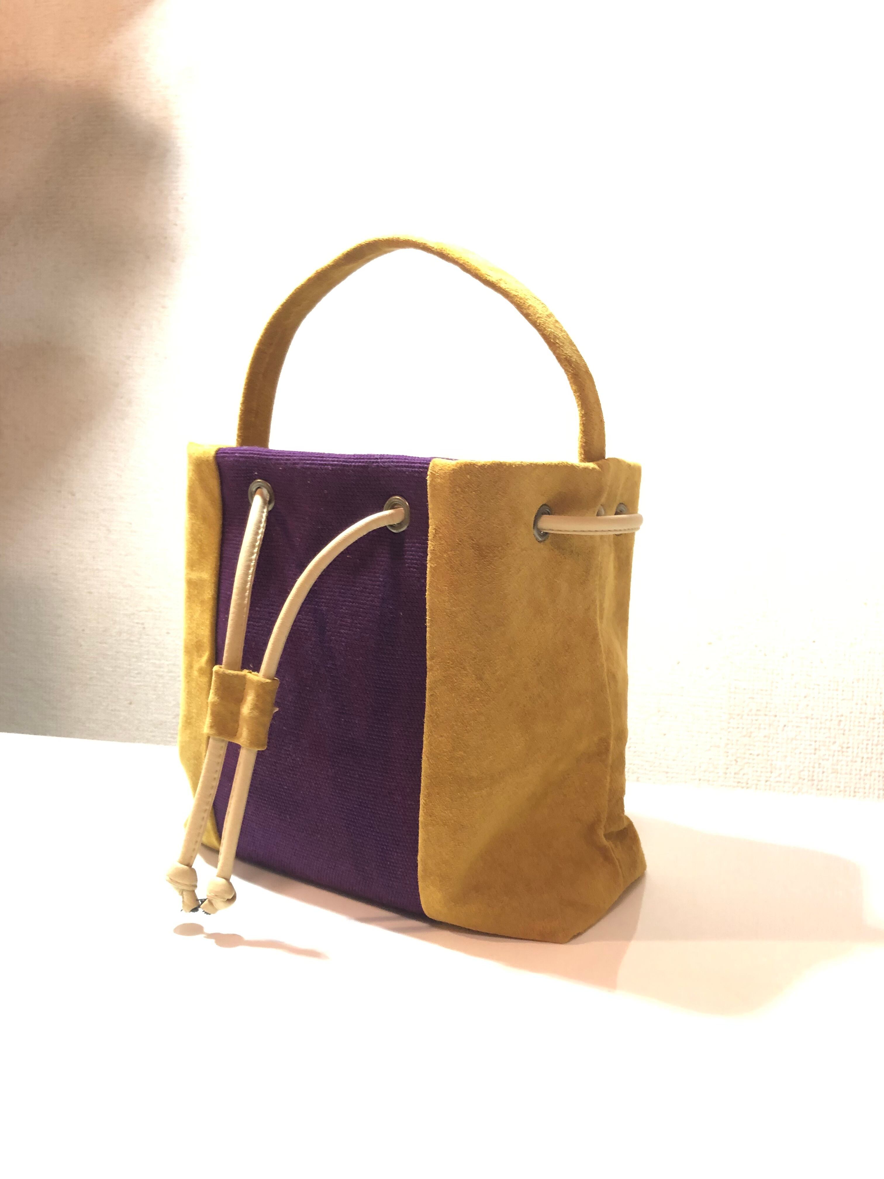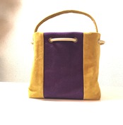 半帯生地とピッグスェードを組み合わせて巾着バッグを作りました。