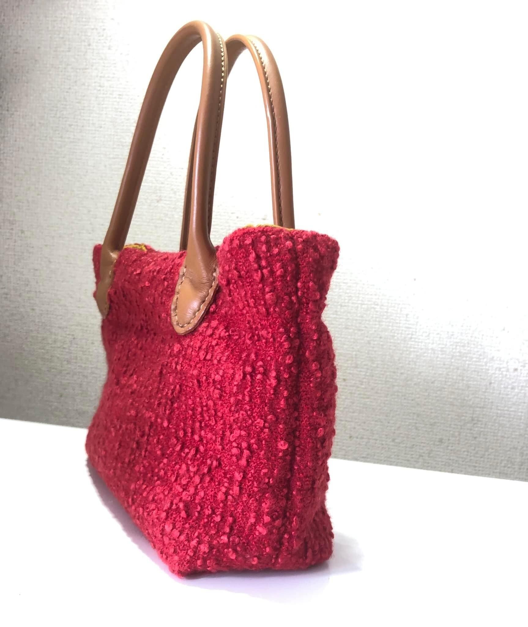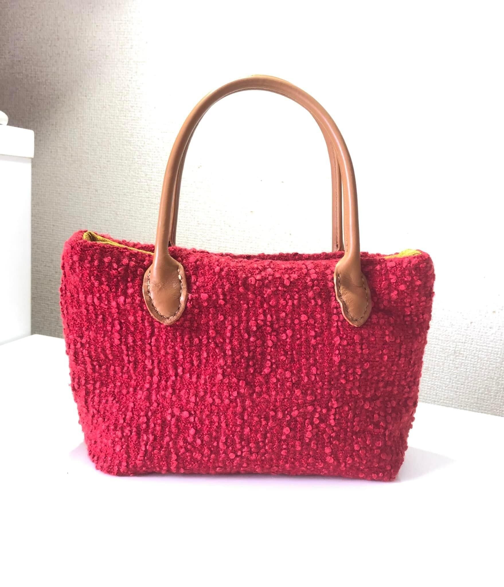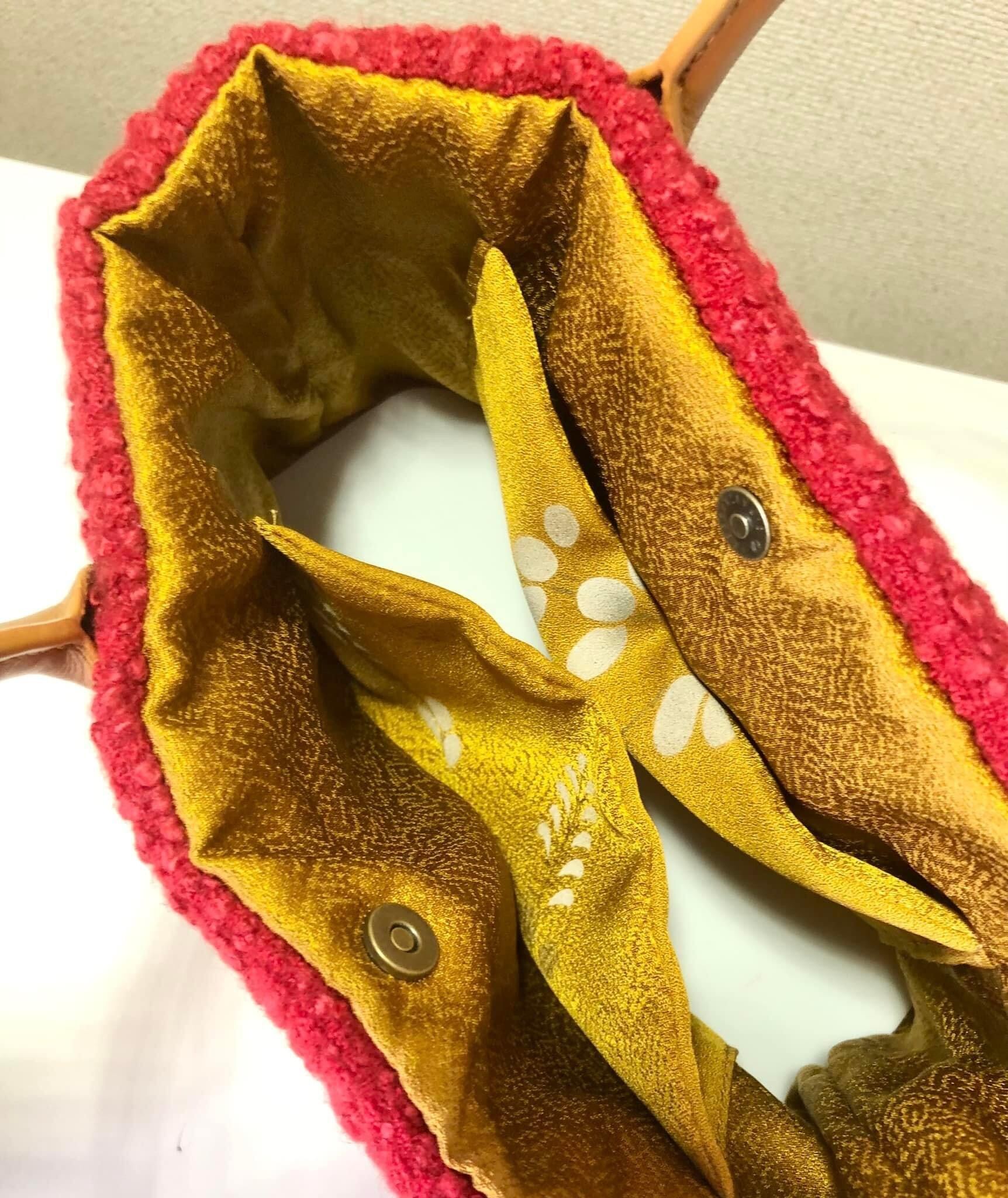 シャネルのようなフランス製生地と裏地に着物生地を使い、ミニトートバッグを作りました。