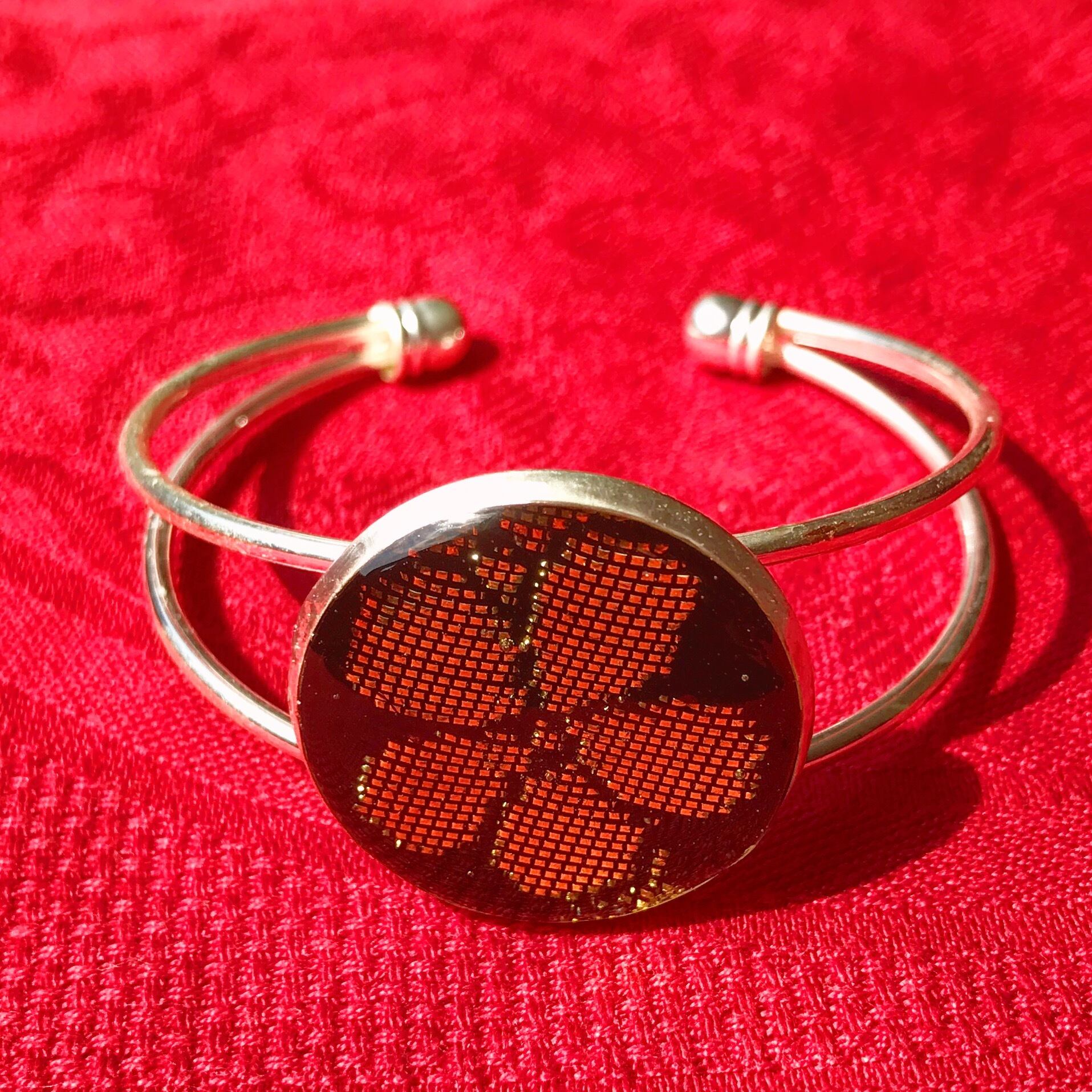 西陣織帯の正絹を使ってアクリル樹脂コーティングしています。