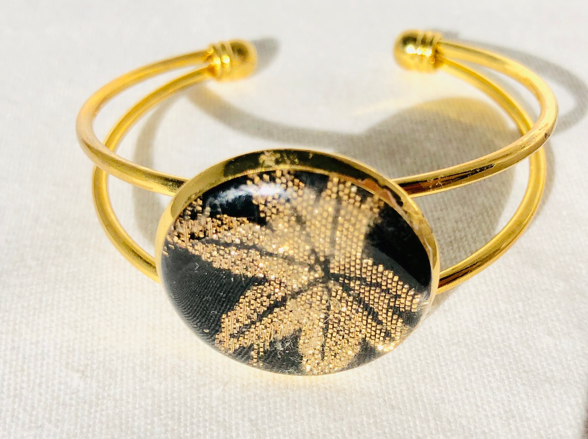 西陣織帯の正絹を使ってアクリル樹脂コーティングしています。
