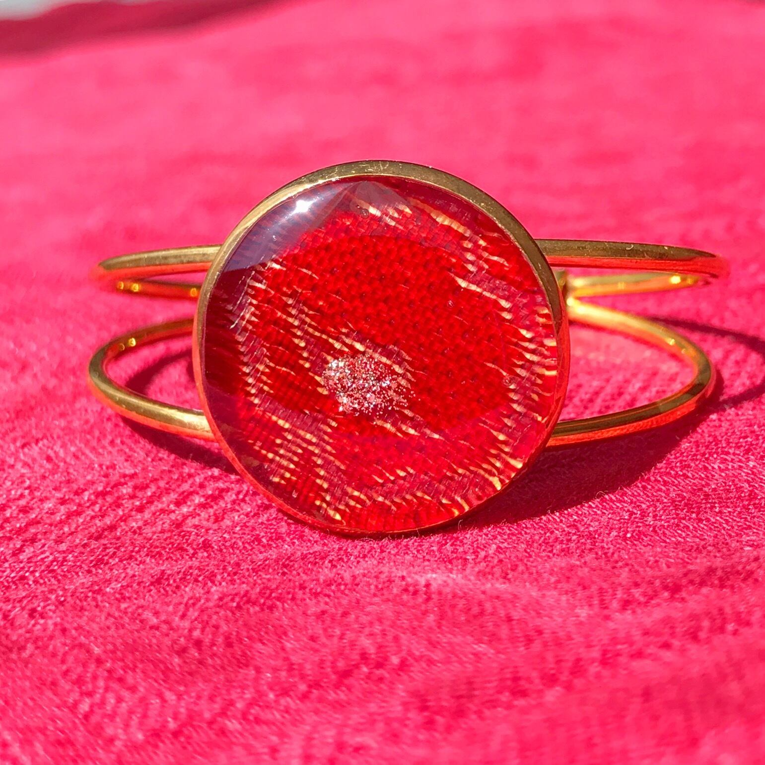 西陣織帯の正絹を使ってアクリル樹脂コーティングしています。
