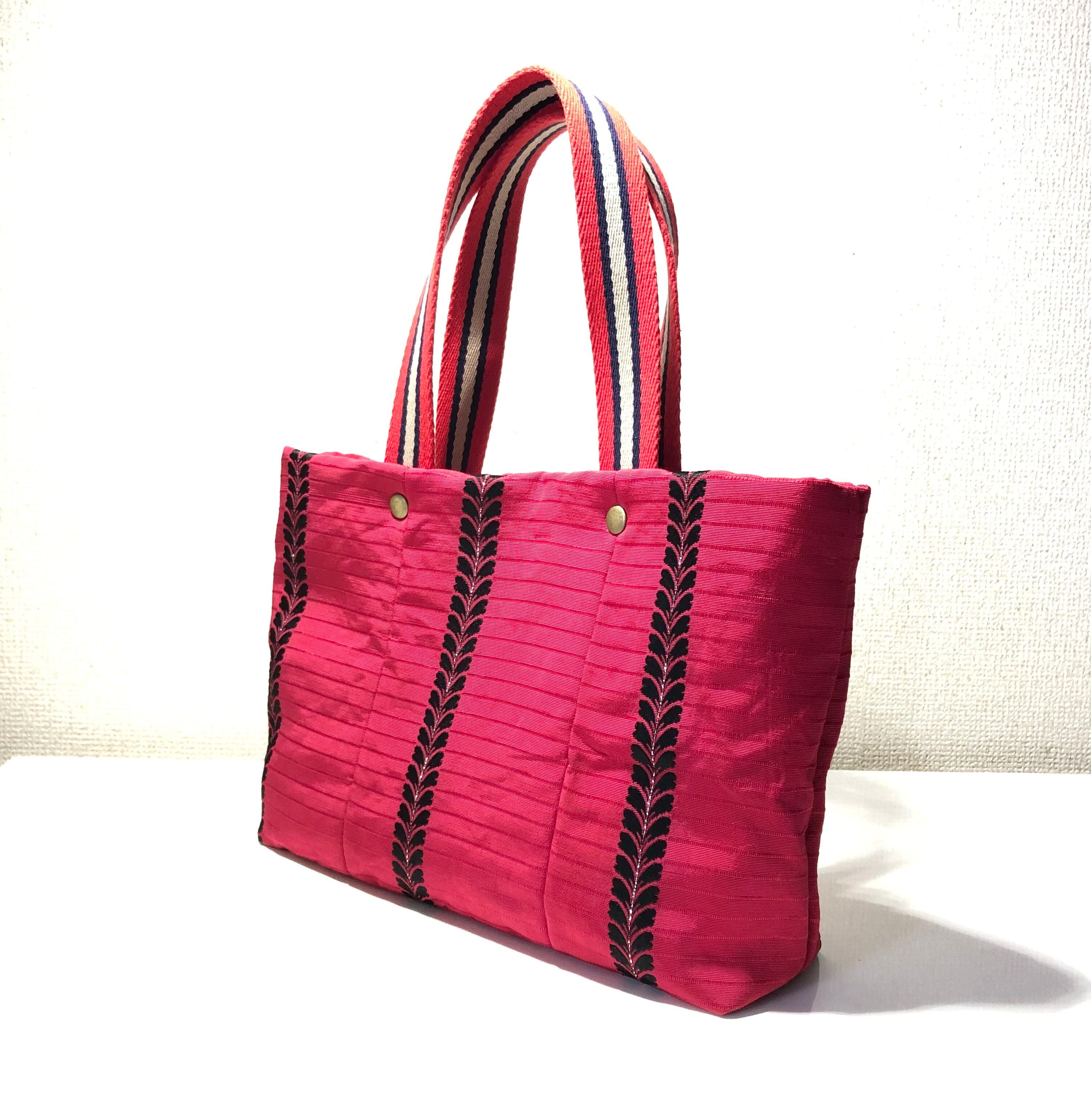 半幅帯生地と綿ベルトを組み合わせてトートバッグを作りました。