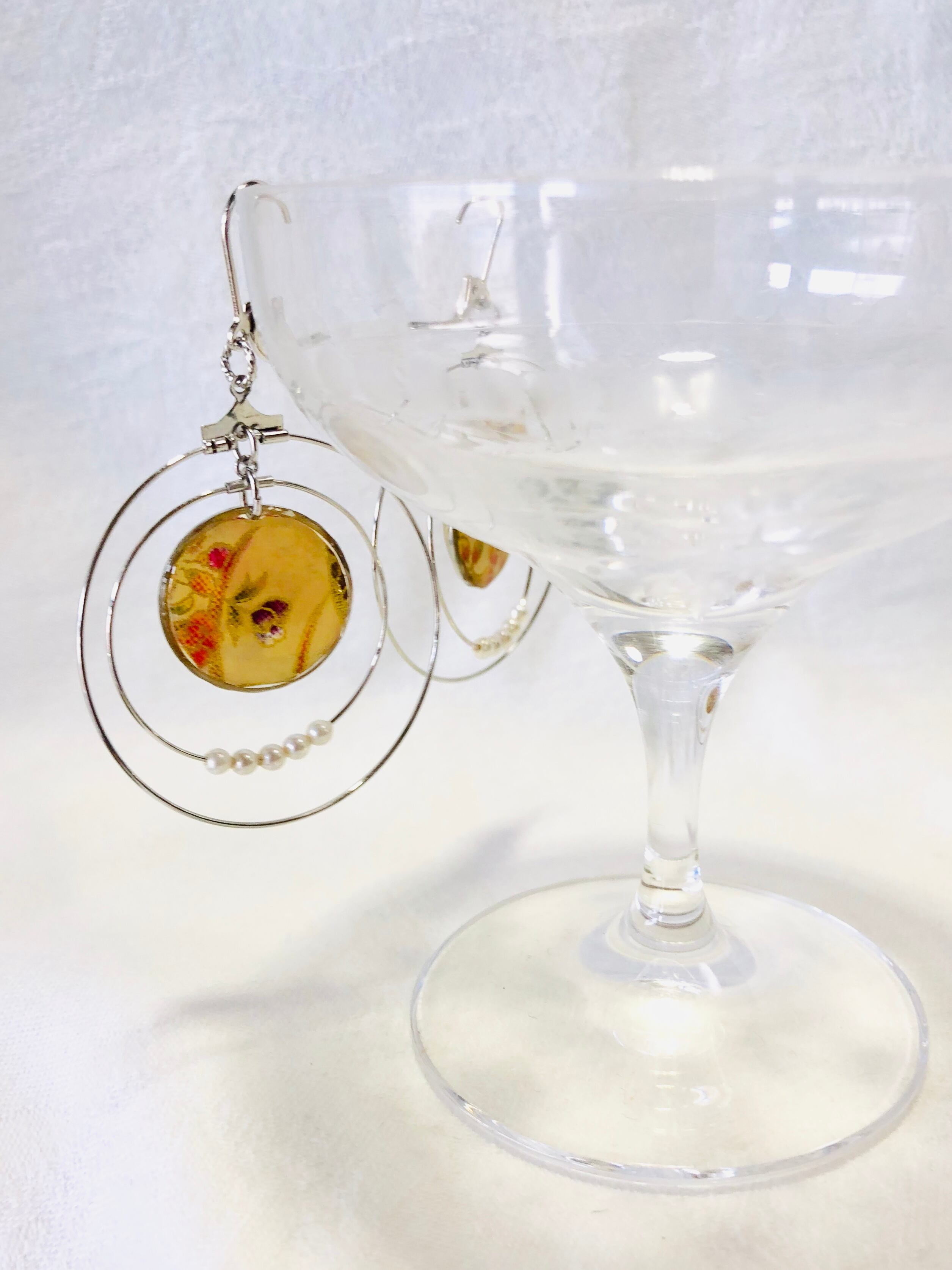 1891年創業二度と手に入らない手すき友禅和紙のピアス