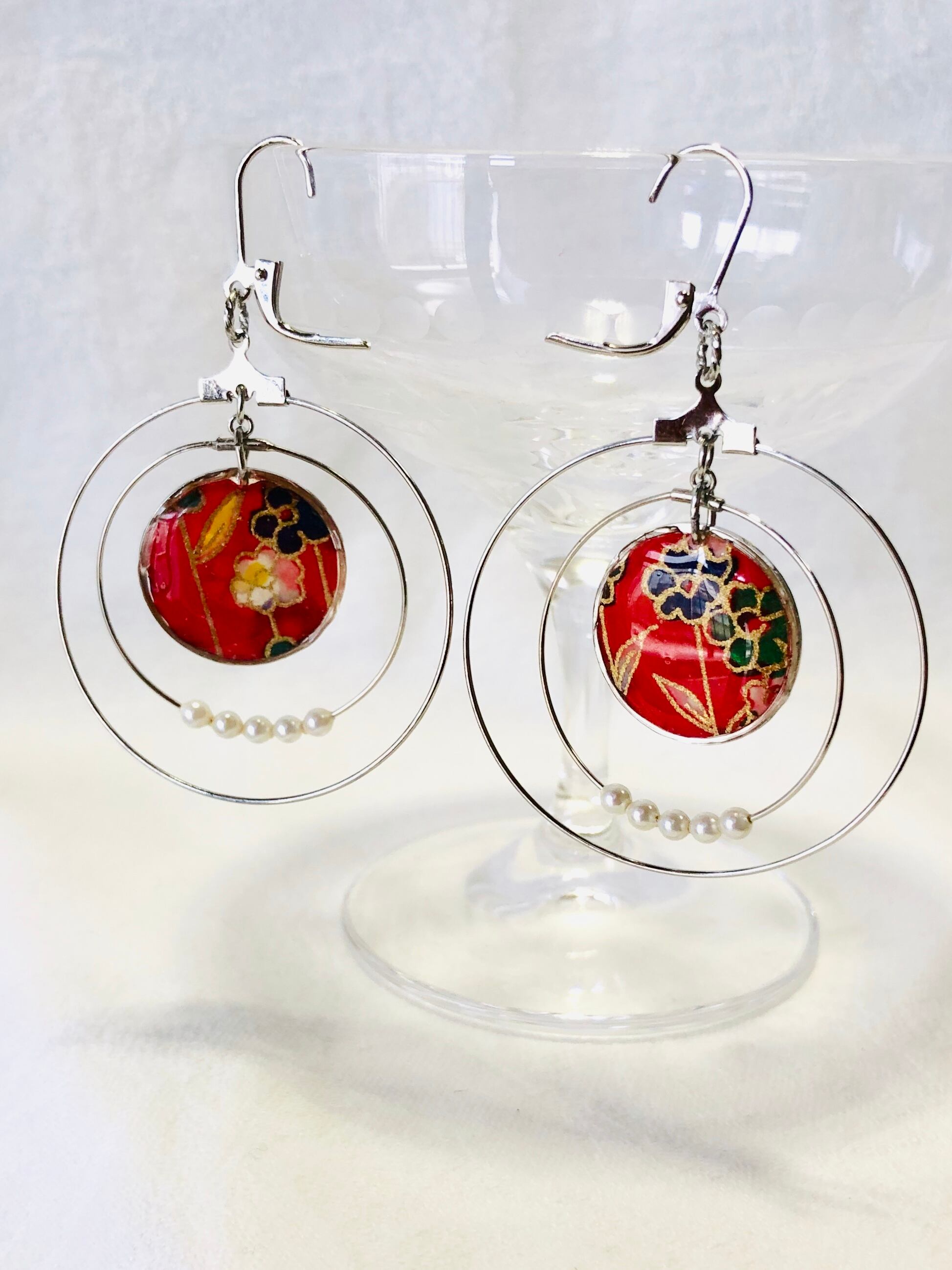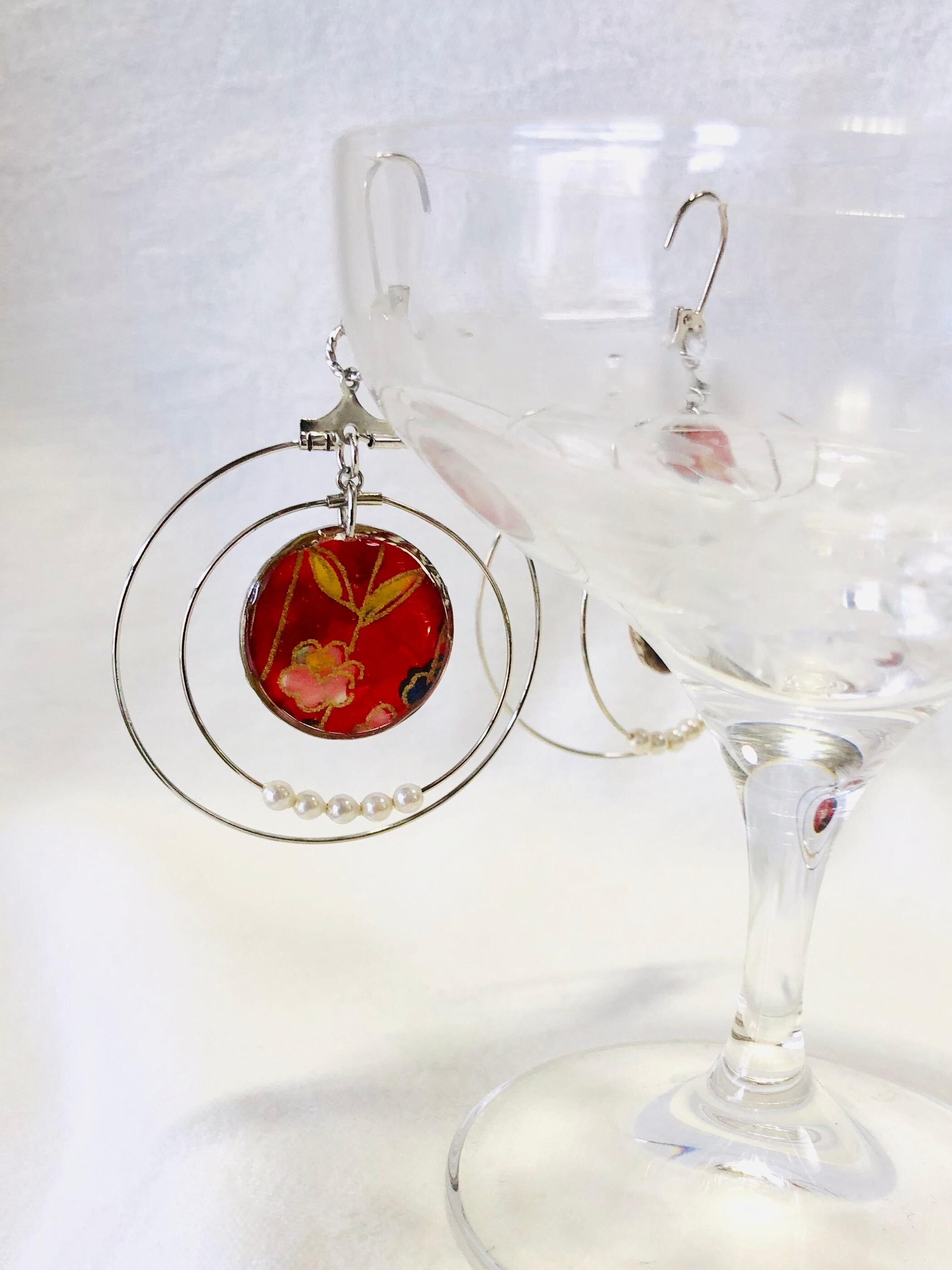 1891年創業二度と手に入らない手すき友禅和紙のピアス