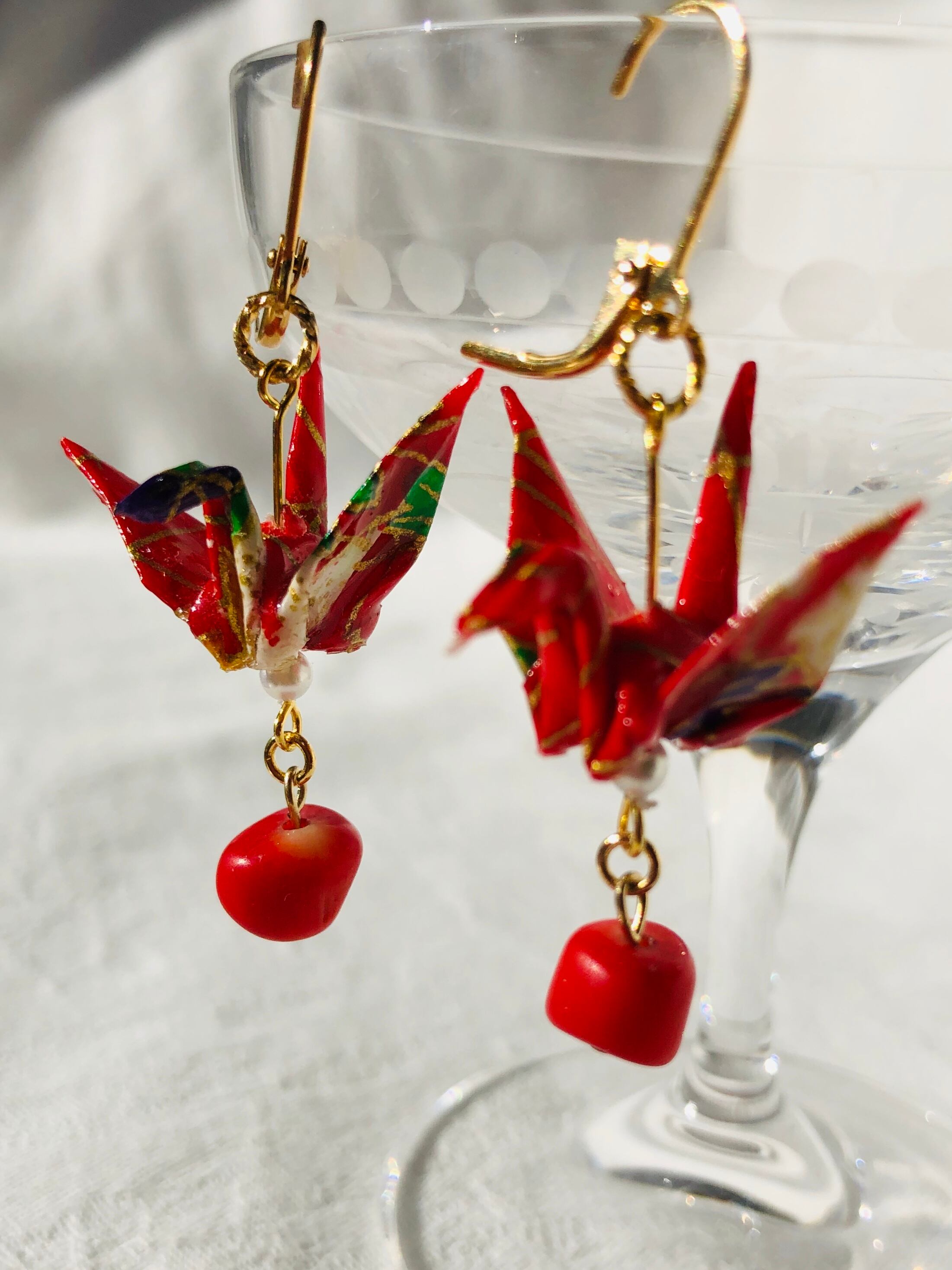 1891年創業二度と手に入らない手すき友禅和紙で折り鶴と天然石のハンドメイド。