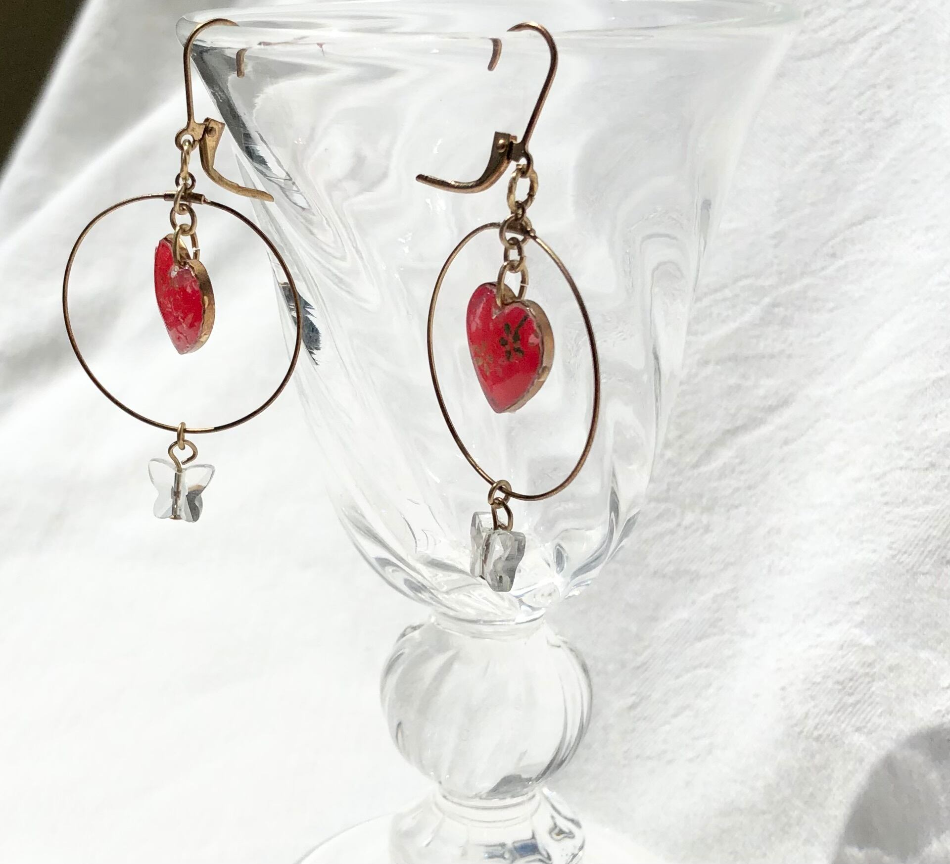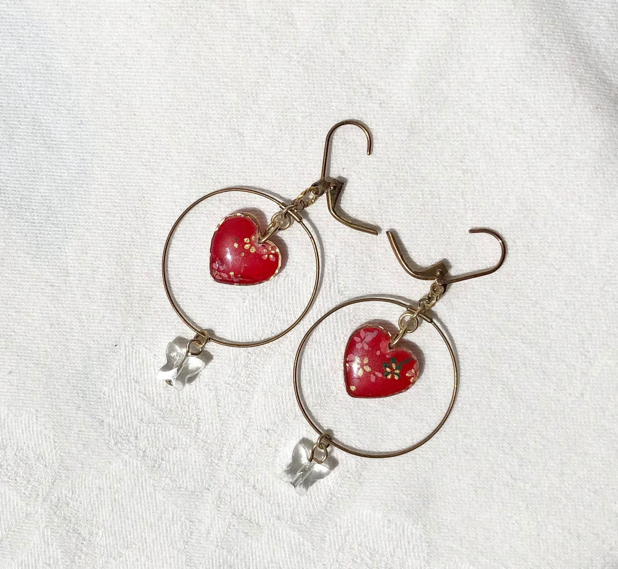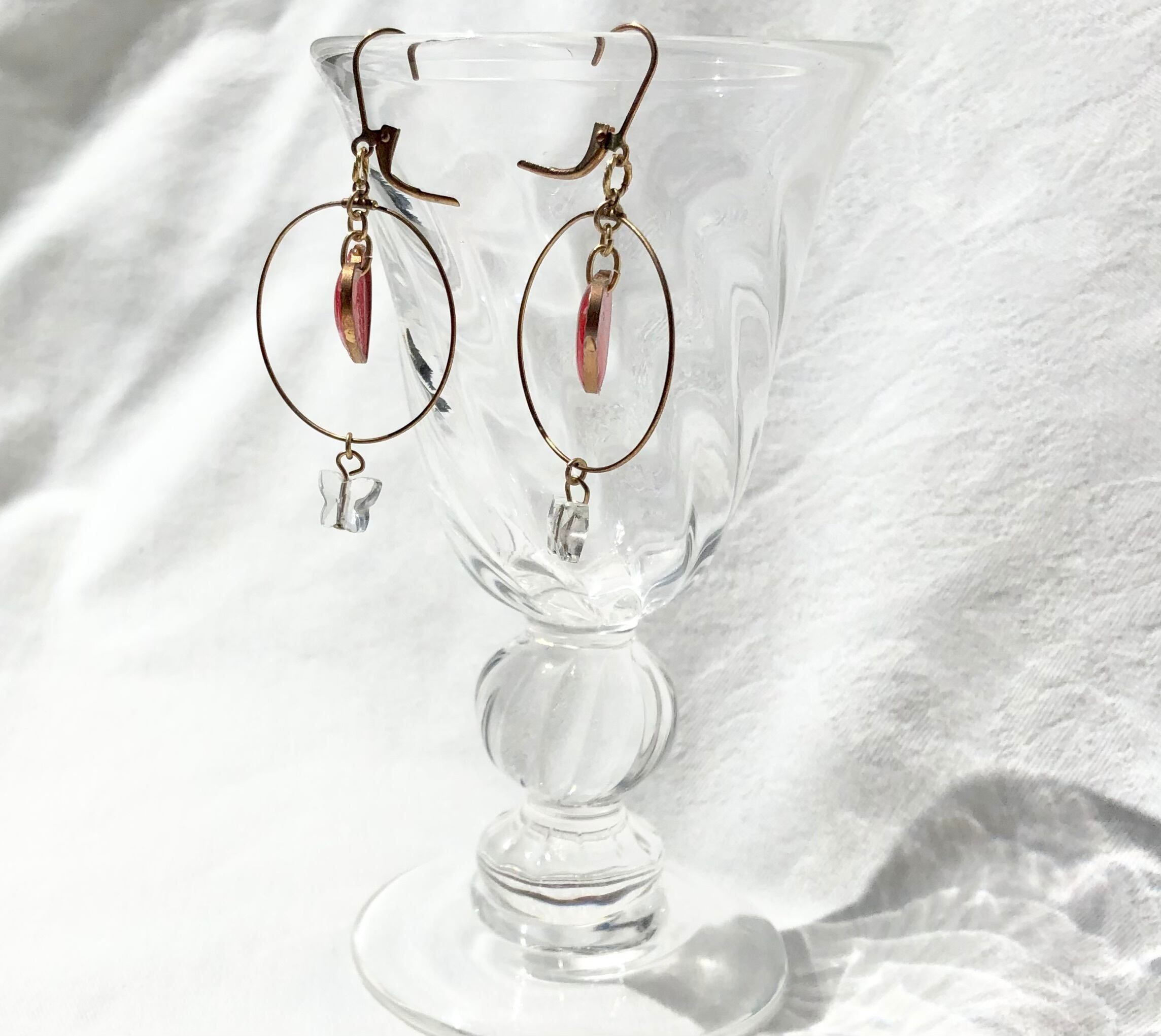 天然石バタフライ水晶と手漉き友禅和紙のピアス