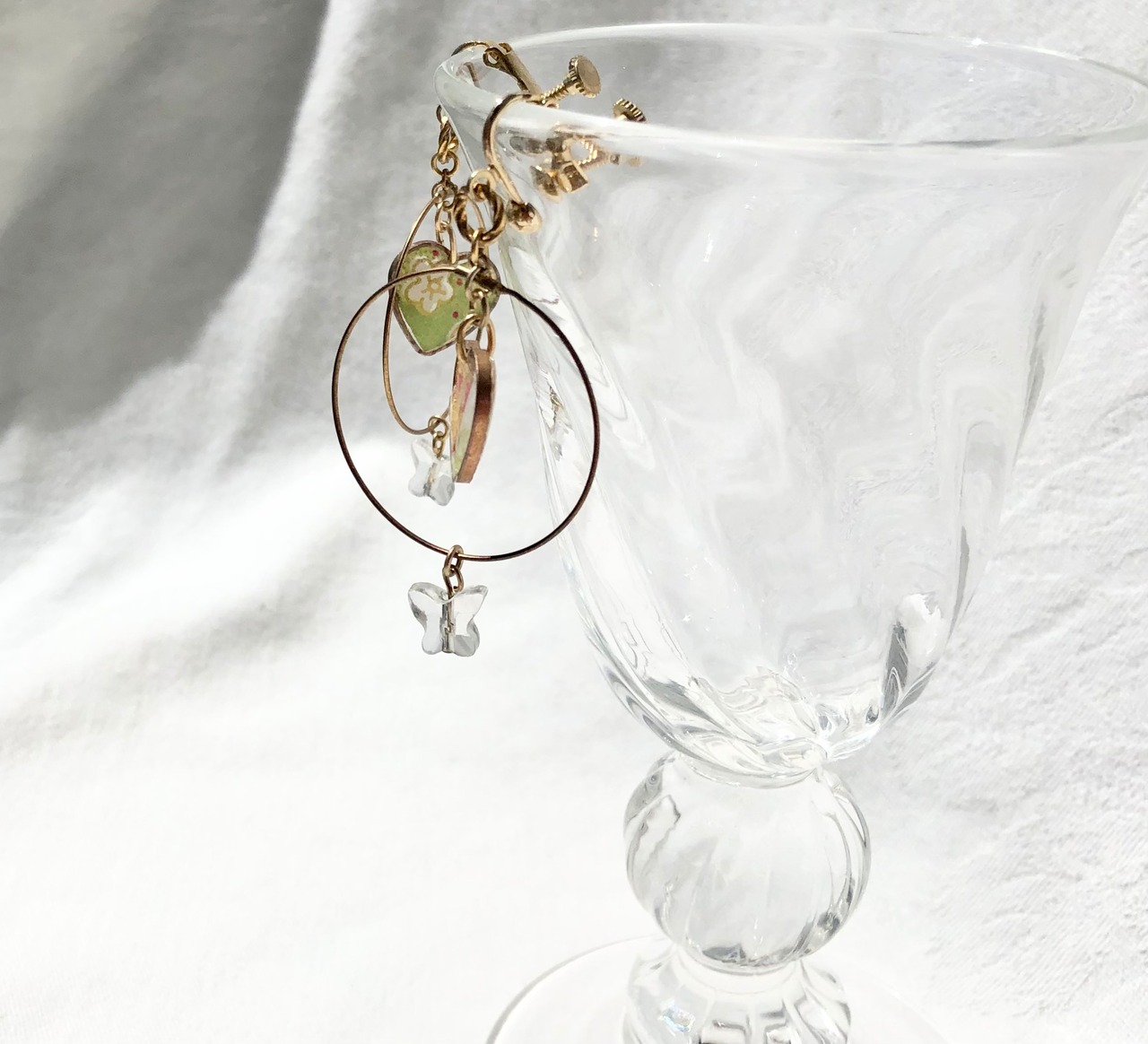 バタフライ水晶&手漉き友禅和紙イヤリング