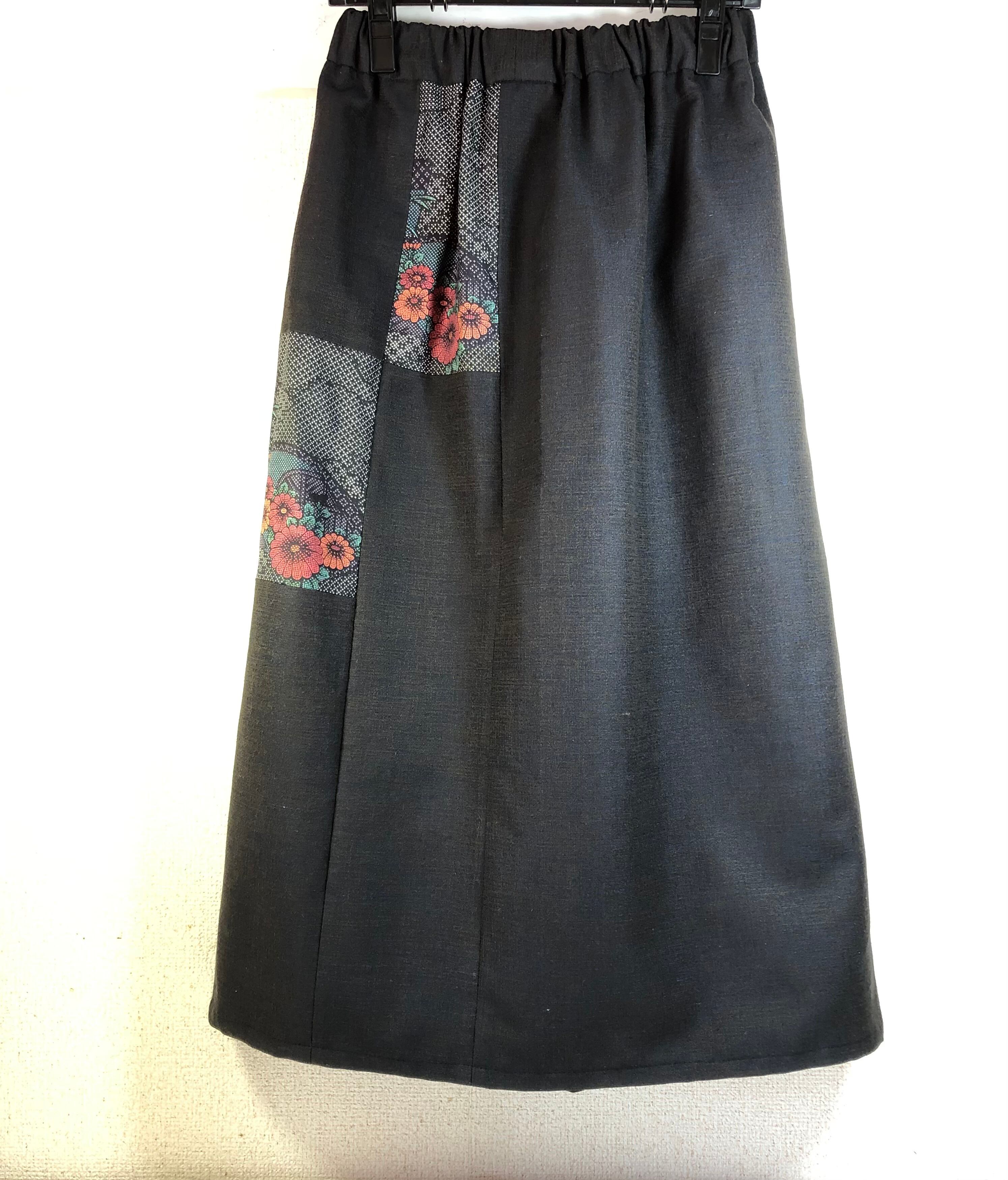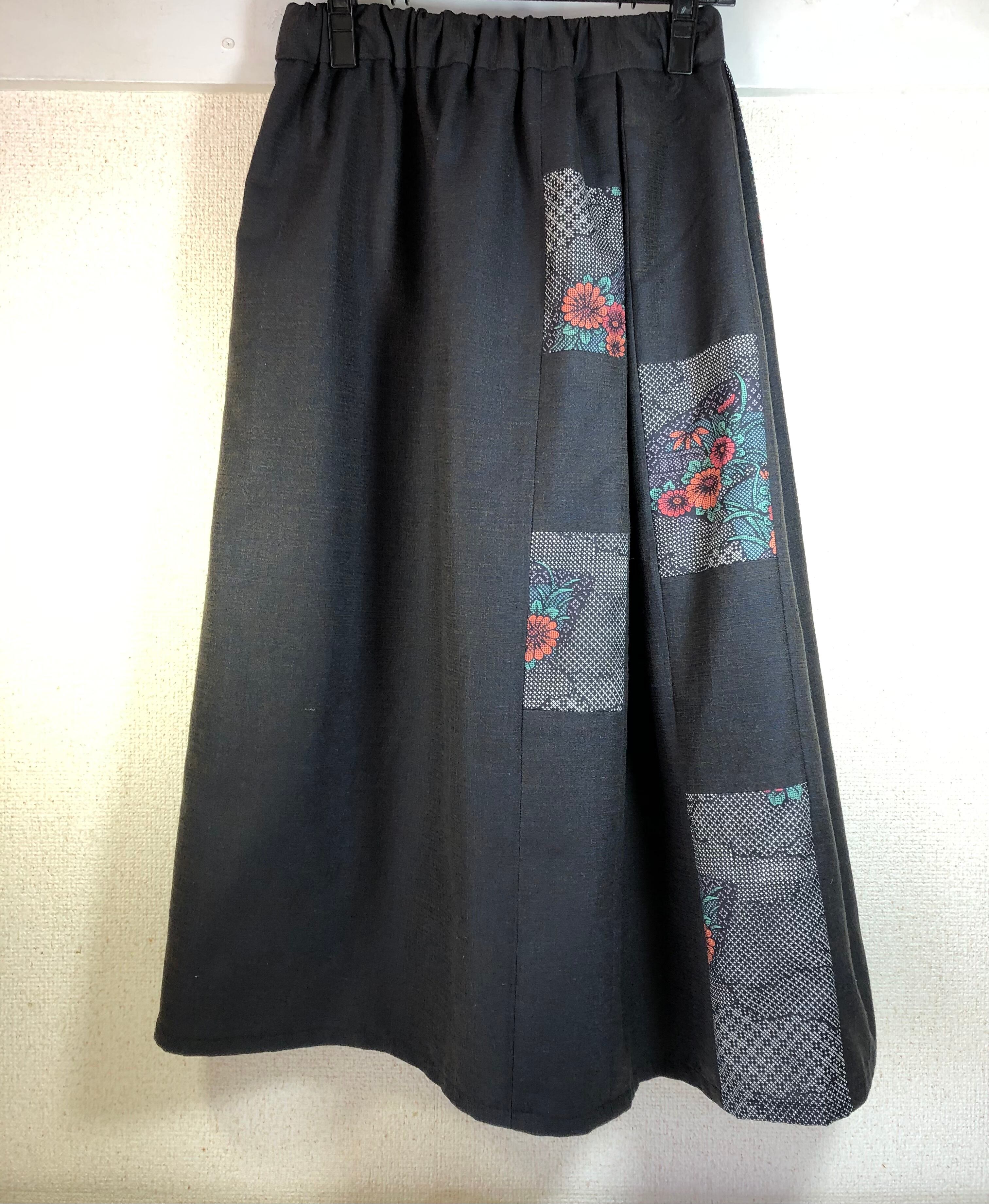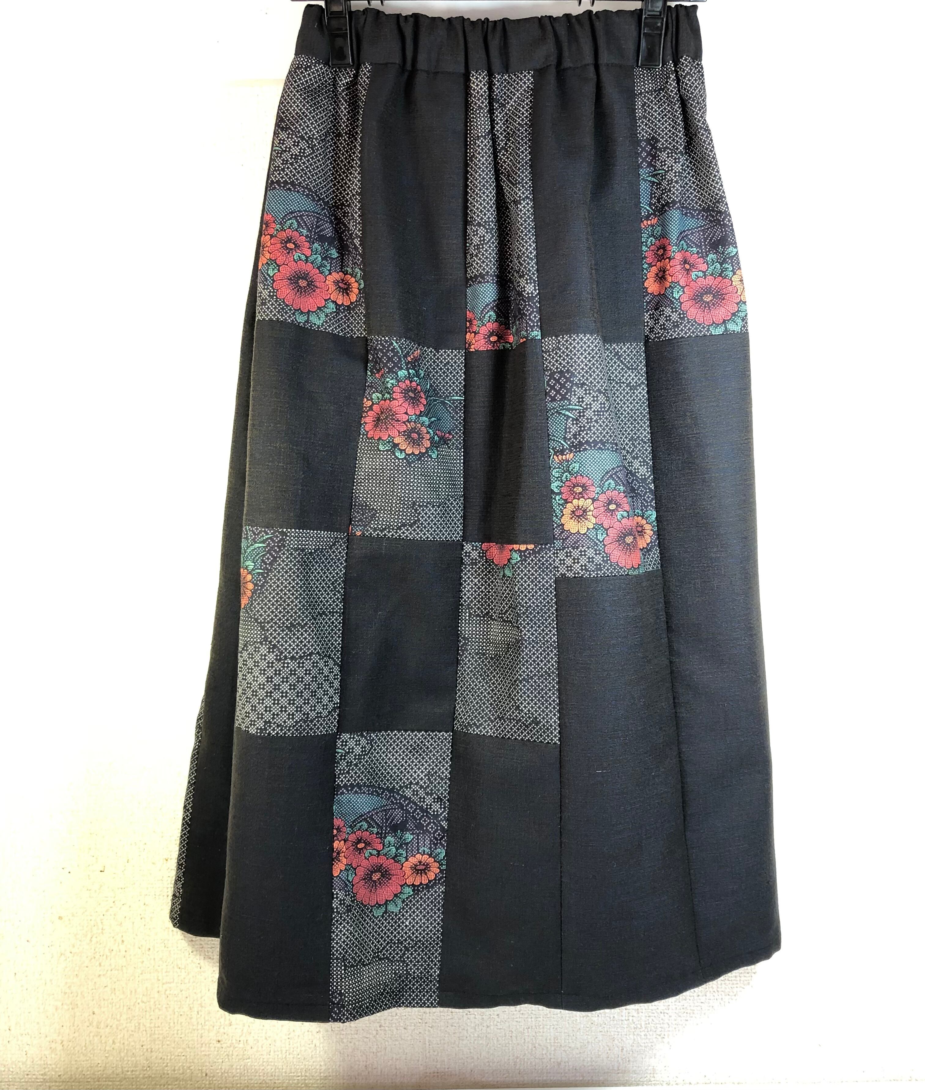 ウール着物と絹大島紬着物をリメイクしたタックギャザースカートです。